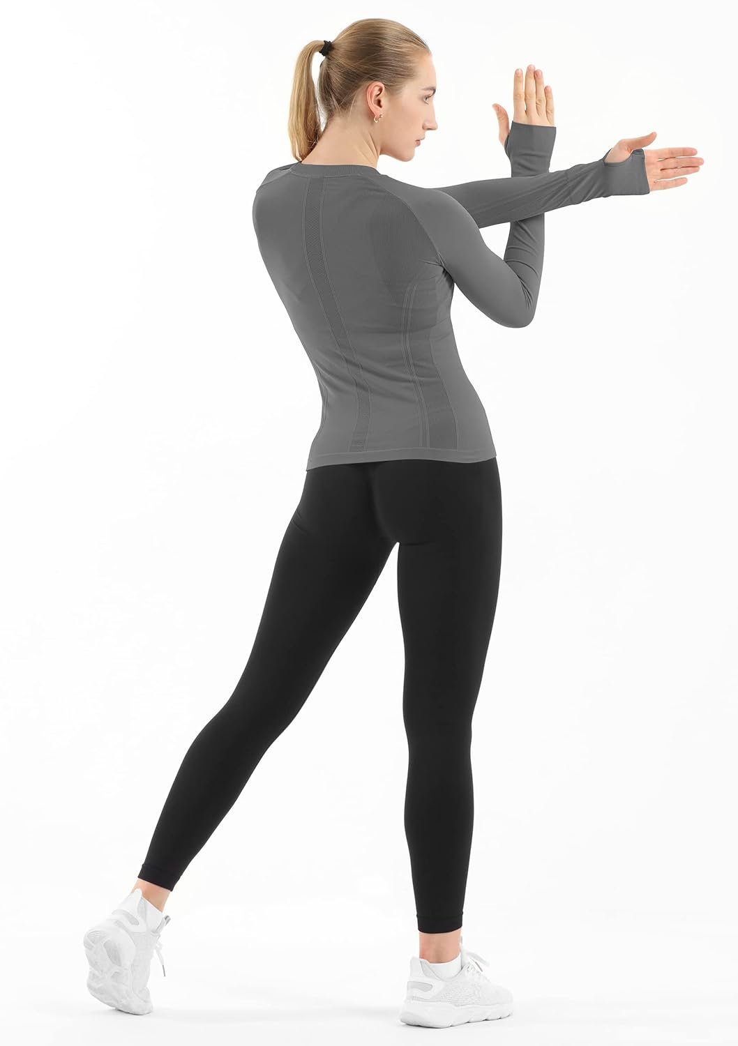 MathCat Seamless Workout Shirts for Women Long Sleeve Yoga Tops Sports Running Shirt Breathable Athletic Top Slim Fit