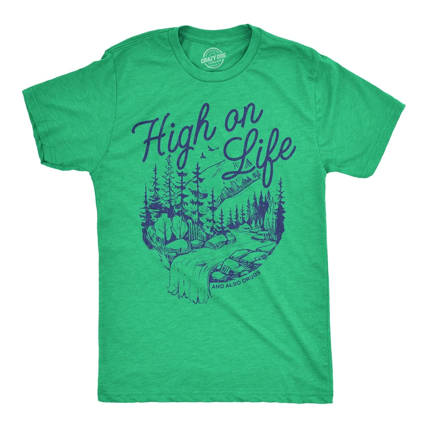 Mens Funny T Shirts High On Life and Also Drugs Sarcastic 420 Graphic Novelty Tee for Men