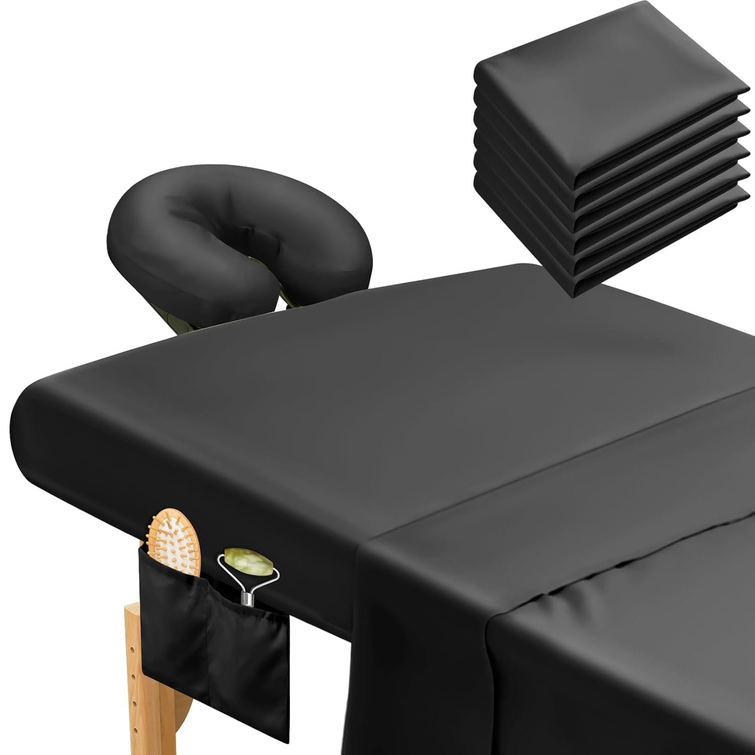 32 reviews for Mixweer 9 Pcs 3 Set Microfiber Massage Table Sheets Set Bulk Includes Flat Sheet, Fitted Sheet with Pocket, Face Rest Cover(Black)