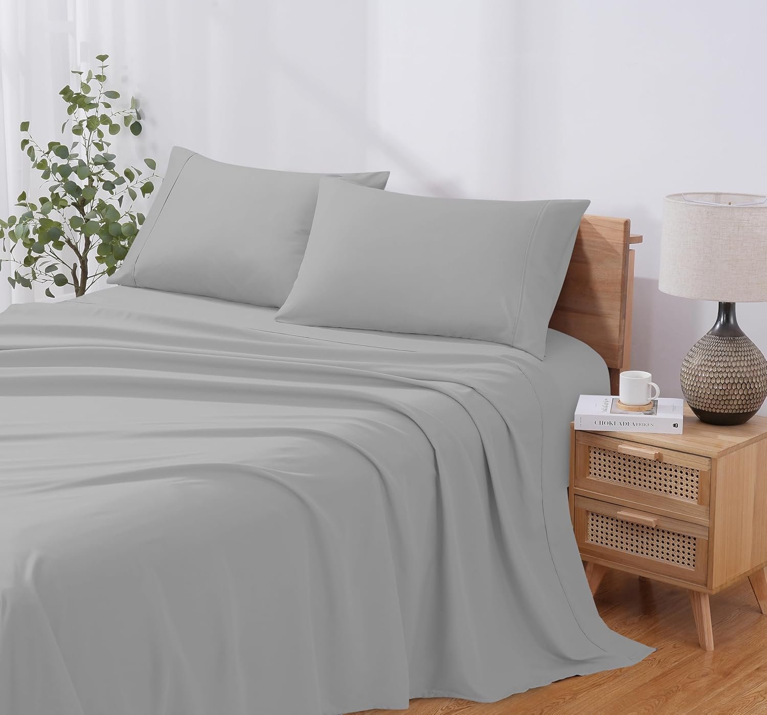 - Soft & Breathable Comfort: Crafted from high-quality double-brushed microfiber, this sheet set delivers a soft, smooth feel that enhances your sleep every night. The breathable, lightweight fabric keeps you cool in summer and cozy in winter, making it the perfect year-round bedding essential. Ideal for anyone seeking affordable luxury and hotel-style softness at home.