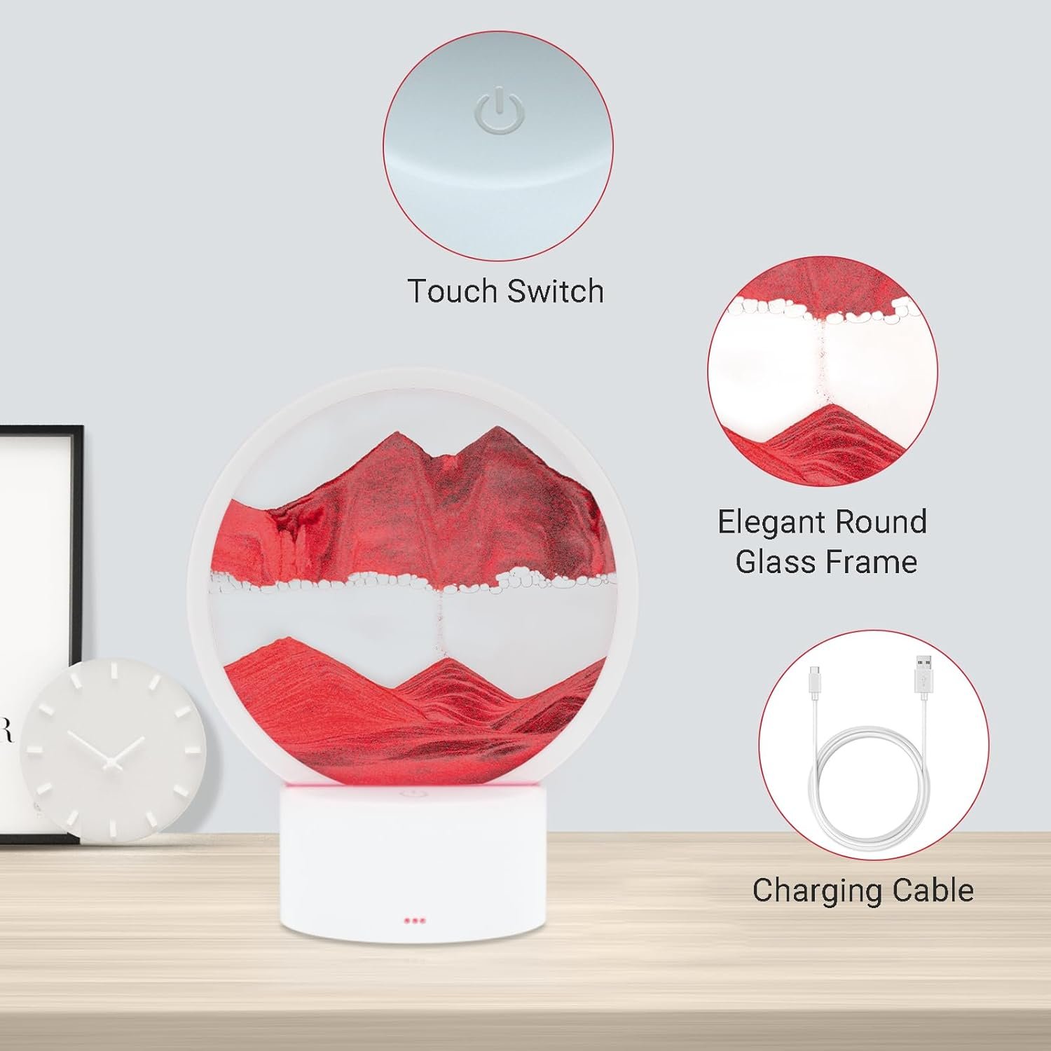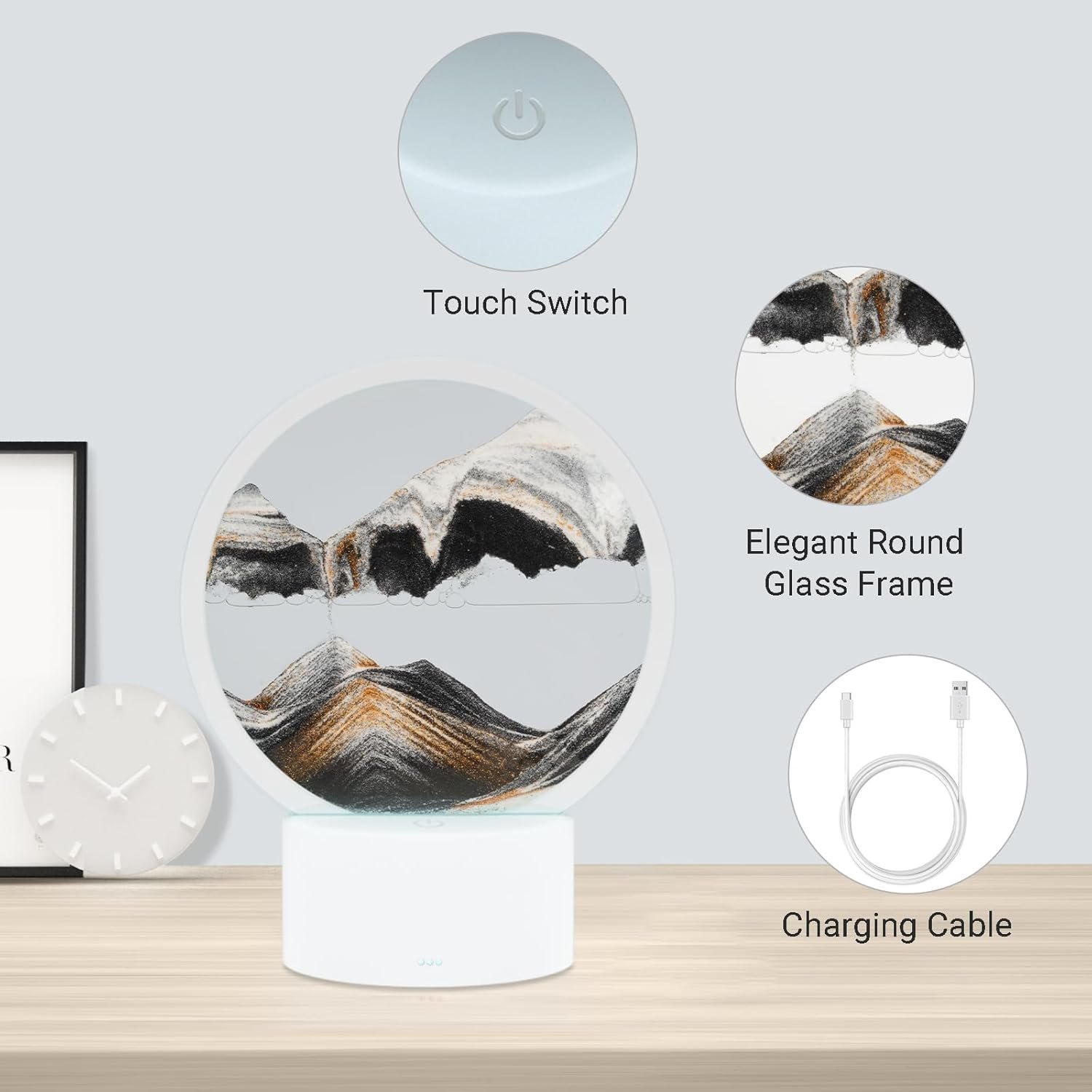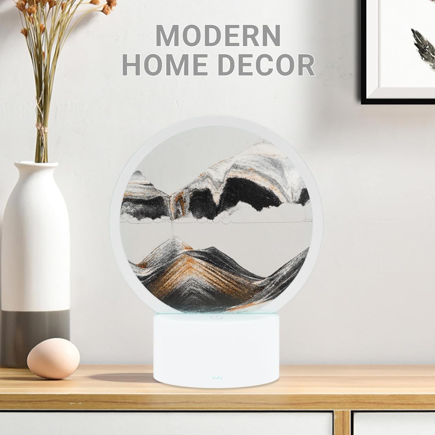 This sand art lamp is genuinely stunning! Watching the sand create new, beautiful landscapes is incredibly relaxing and therapeutic. The integrated LED light is the game-changer, illuminating the flow and creating a sophisticated, ambient glow. High quality and absolutely mesmerizing—it’s the perfect unique decor piece and stress-relief item. Five stars, hands down!