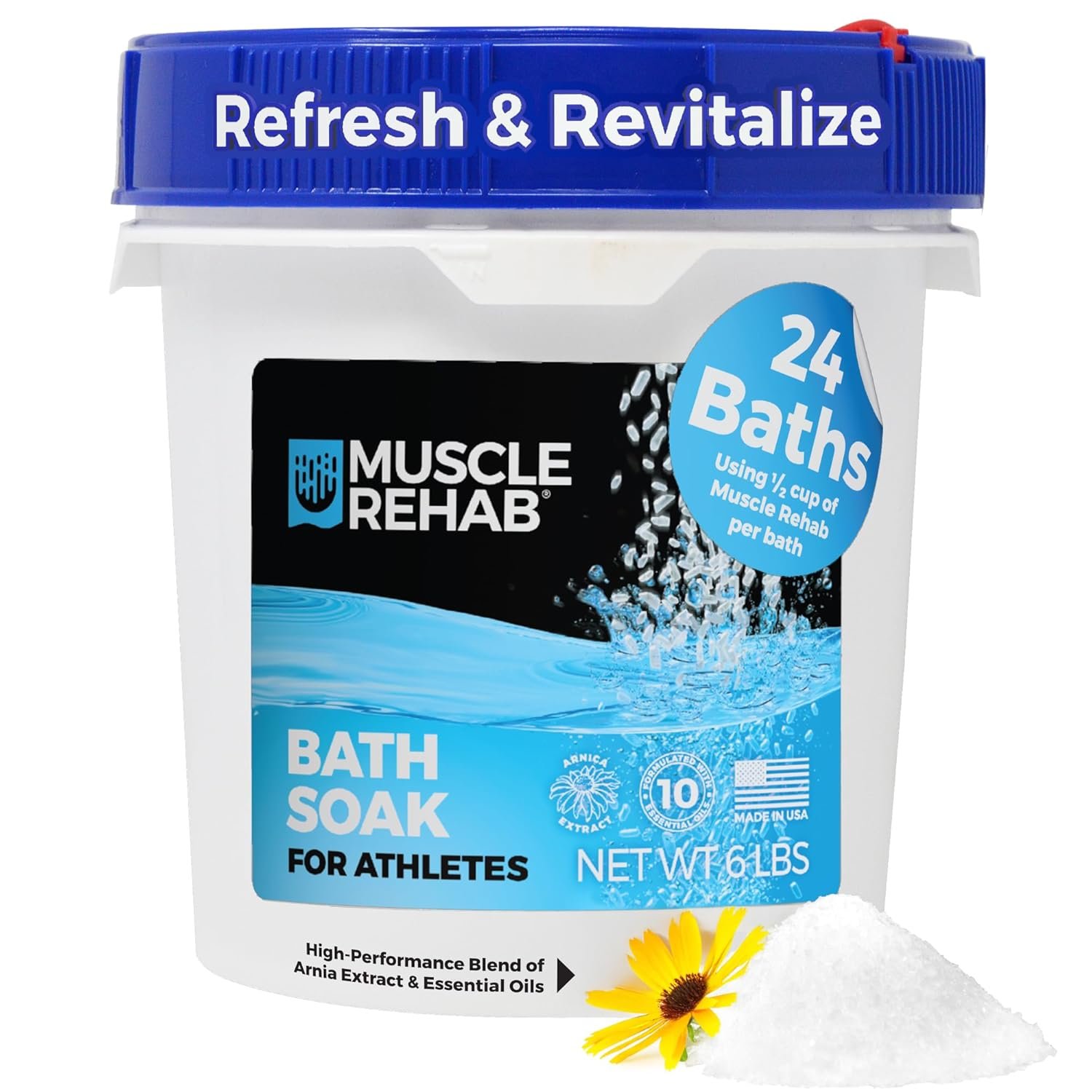 - Lasting Bulk Supply: Large 6lb pail contains over 20 baths worth of Muscle Rehab Muscle Soak USP Epsom salts, providing excellent value for those seeking regular muscle recovery. Easy to use: Simply add 1/4 to 1/2 cup of the salt blend to any temperature running bath water, soak for 20 minutes and feel your tension melt away. The screw top lid keeps the salts fresh.