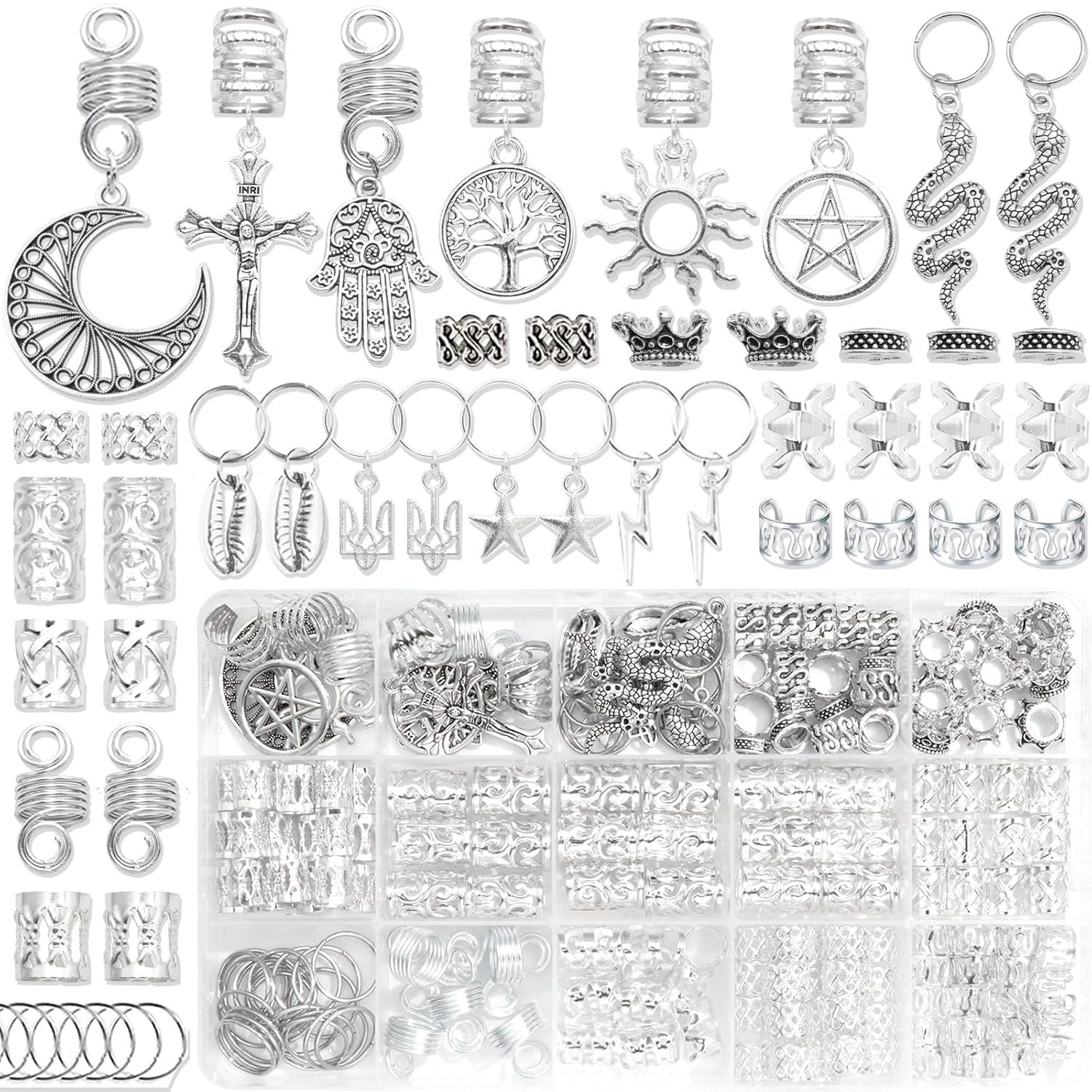 - Material:186PCS Viking Beads Hair Tube Jewelry for braid charms are made of alloy with plated technique, that light weight and not easy to be broken or faded.Our vintage silver braid accessories can bring you a variety of wearing experiences and make you look more eye-catching in the crowds.