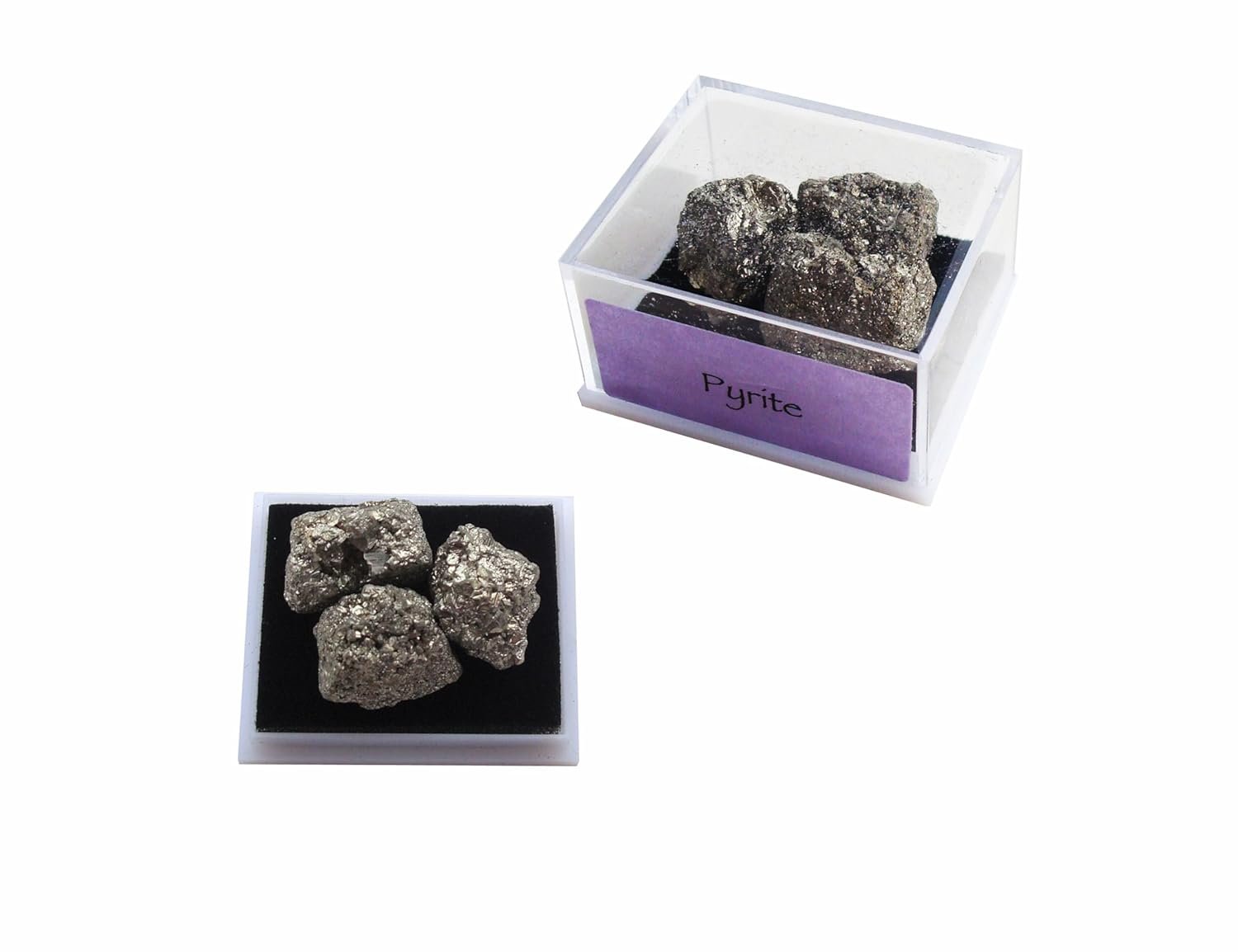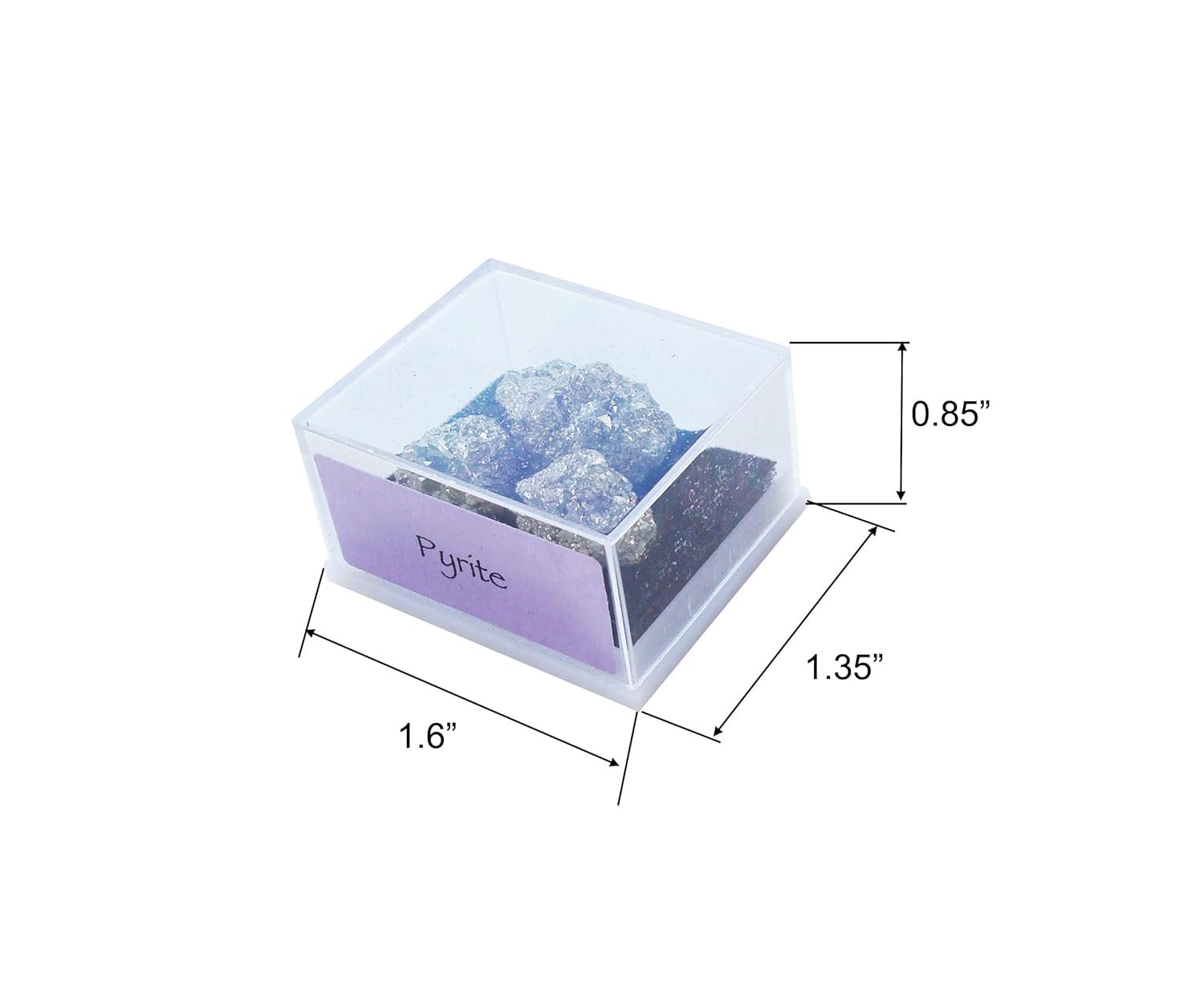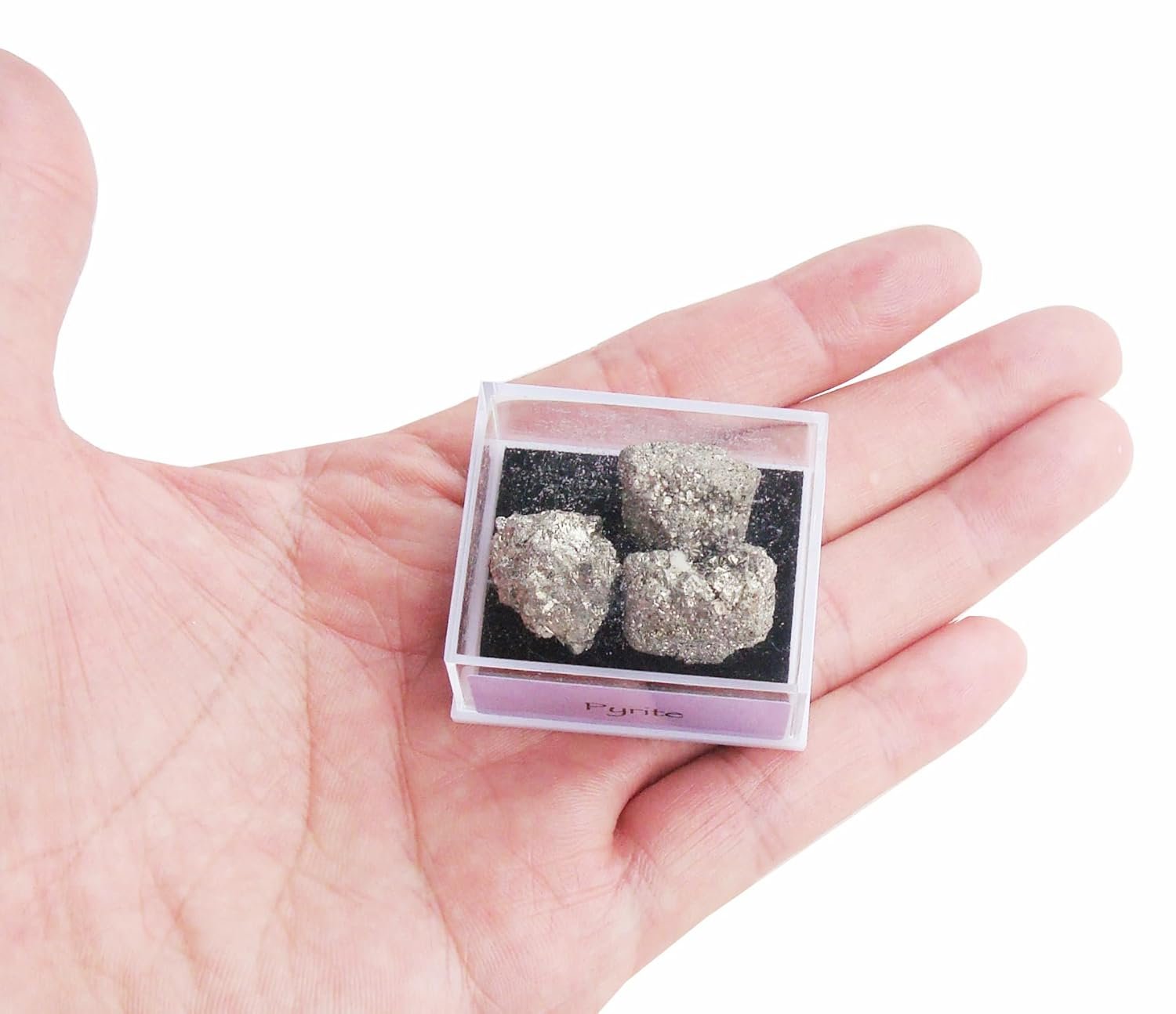 This is a tiny set of stones. They are pyrite, and they are pretty. I’m not sure they are worth the cost, though. These can be found easily and are not rare. Plus, the stones are very small. They come in a plastic box with a transparent lid, so they can be viewed easily. Pyrite is called Fool’s Gold because of its looks. These stones do have that sparkle, even though they are small.