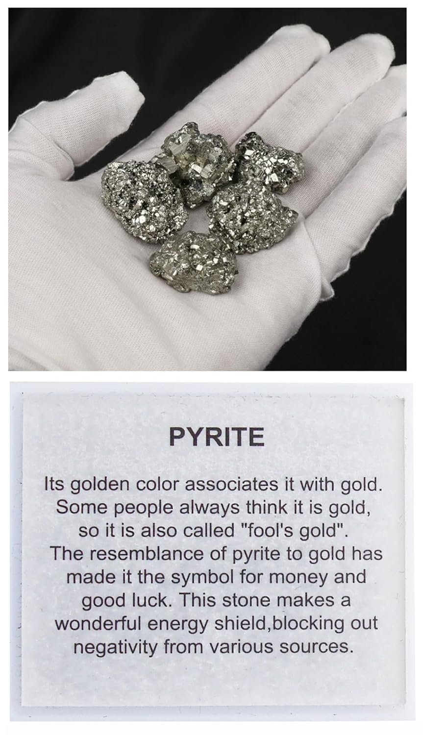 - MATERIAL: pyrite, natural ore. One can use these as Crystals for Raw Stones for Tumbling DIY creativity, Protection, Meditation Healing, Chakra Balancing and more. Pyrite is believed to promote vitality, confidence, and willpower. It is said to enhance mental clarity, focus, and manifestation abilities, aiding in achieving one’s goals and aspirations.
