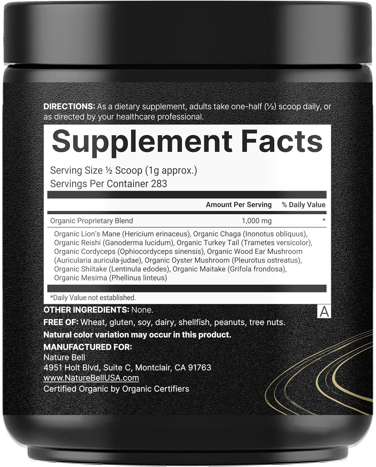 NatureBell Organic Mushroom Powder, 10oz | 10-in-1 Adaptogenic Blend with Lion’s Mane, Reishi, Shiitake, Chaga & More | Great for Coffee, Smoothies & Recipes