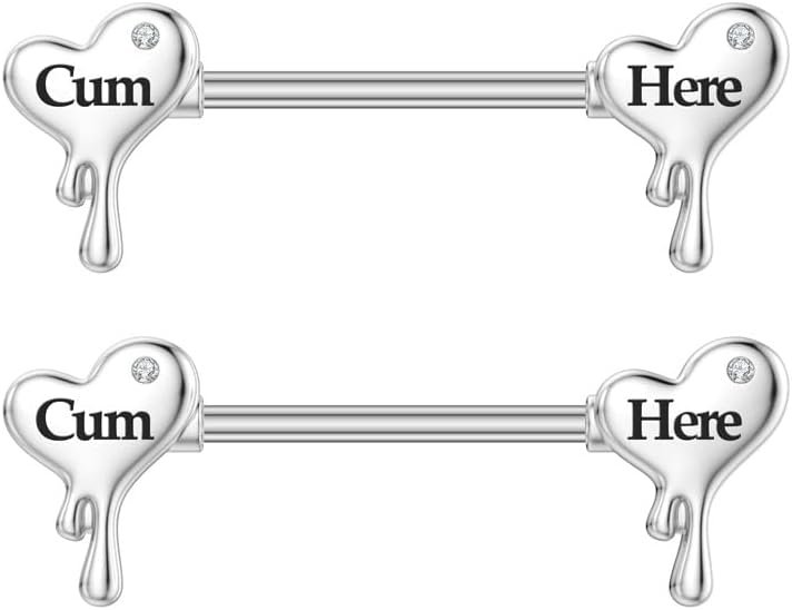 - Chic Shape: These stainless steel nipplerings are designed in adorable heart shape, engraved with naughty words as picture shown, fashionable and cute in appearance, you can be more sexy and attractive with these delicate barbells.