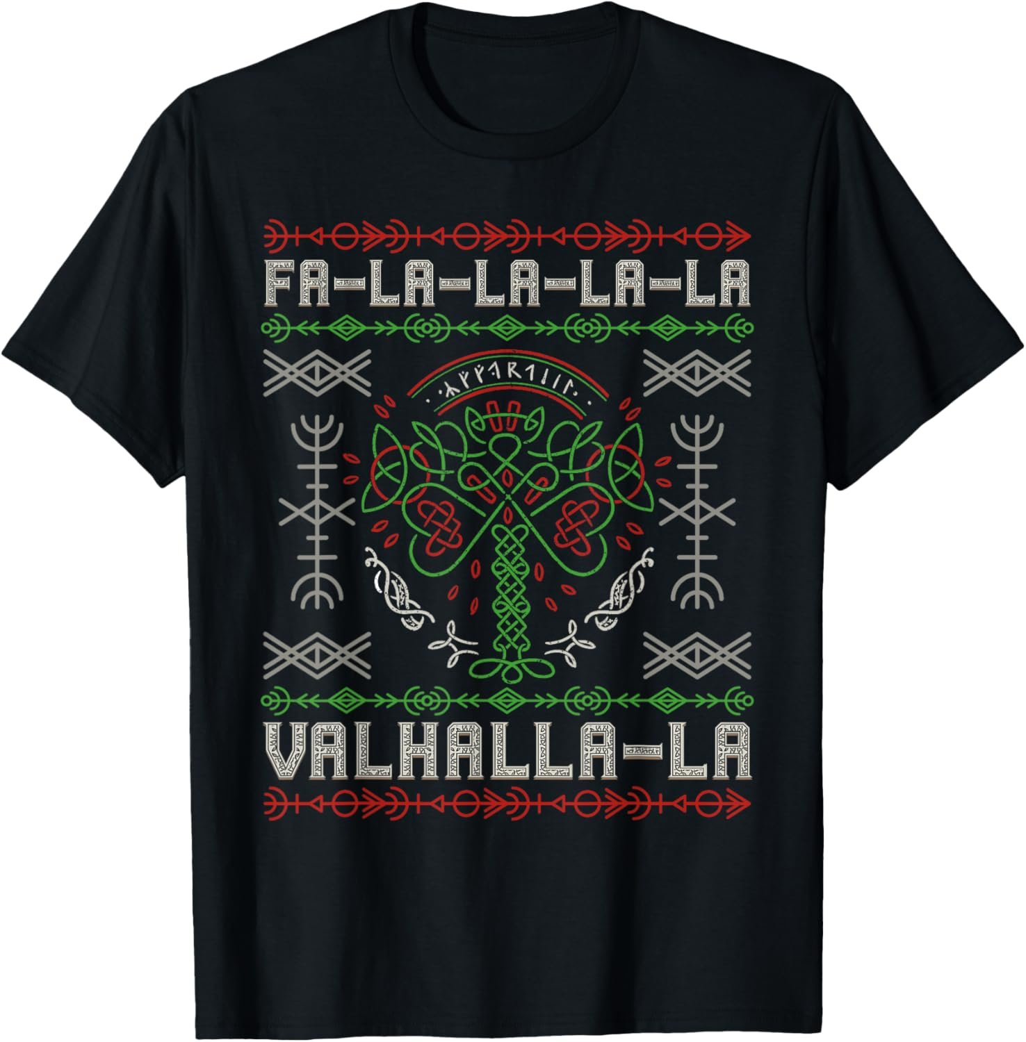 - Fa-La-La-La Valhalla-La Norsk Viking Ugly Christmas Graphic Design shows different viking runes, celtic knots and nordic norse symbols & Yggdrasil. Pagan mythology from Asgard saying Fa-La-La-La Valhalla-La. Funny Ugly Viking Design. Viking Christmas Tree.
