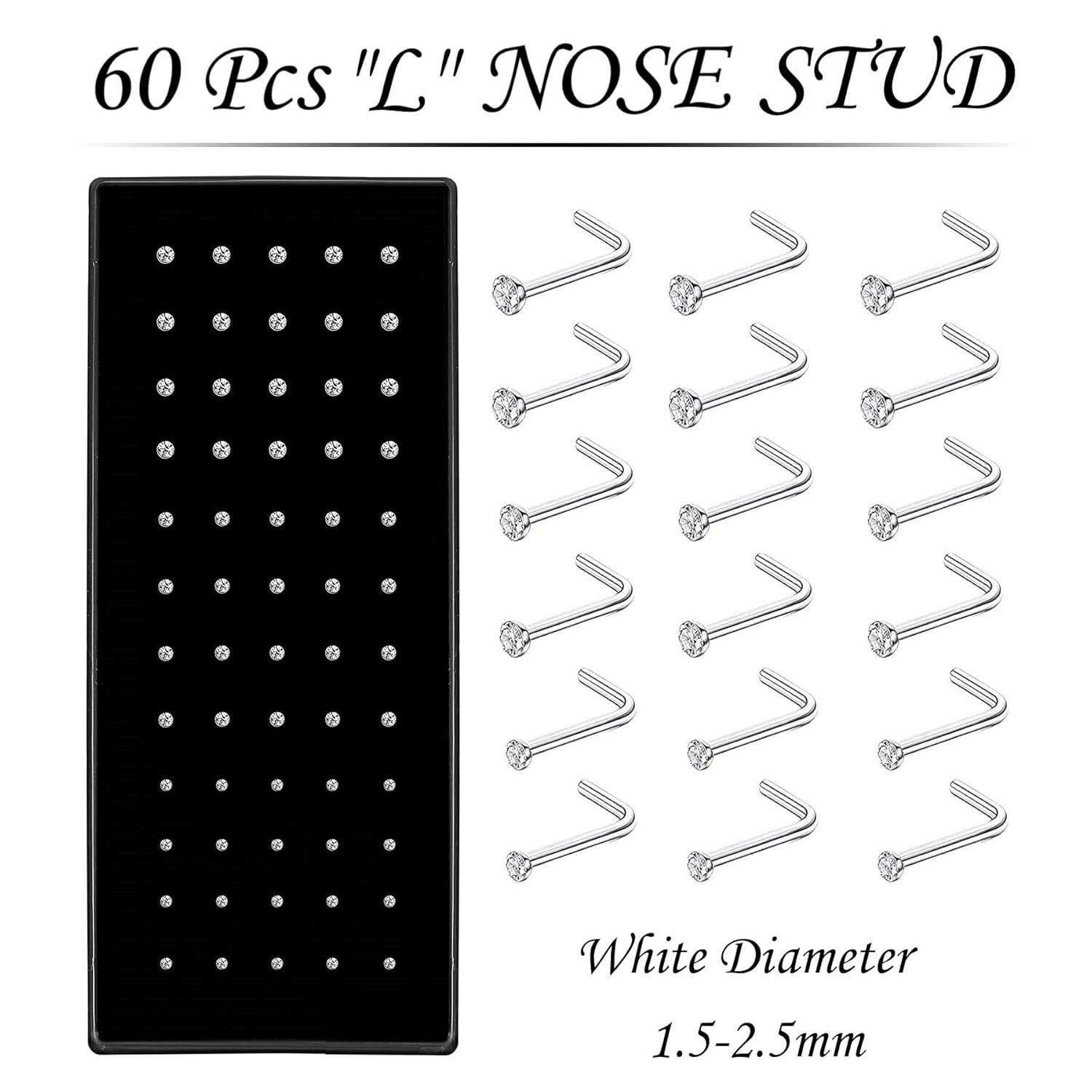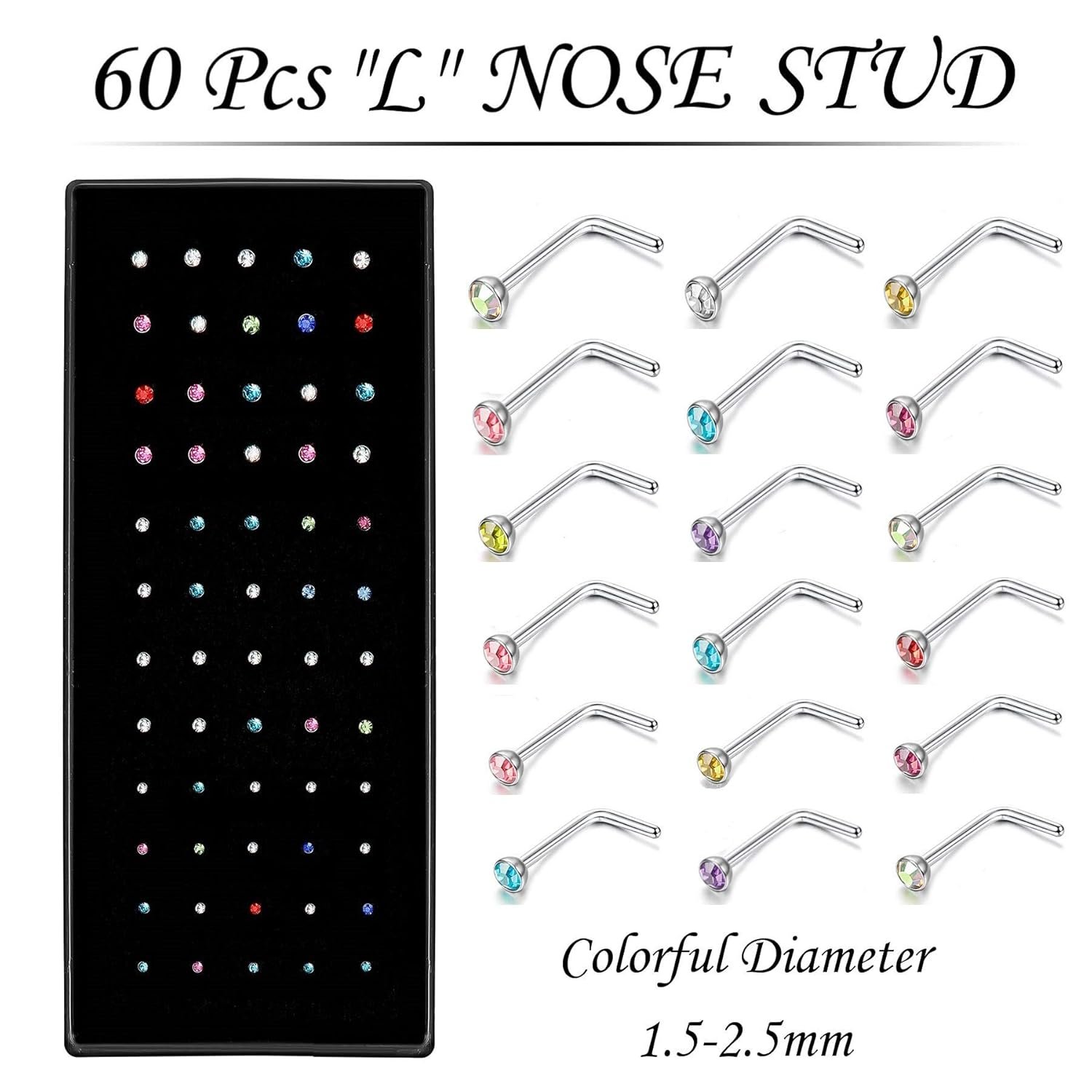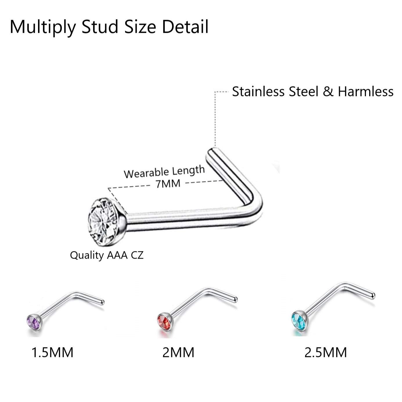 - ❷ Perfect User Experience✔ ➤Nose rings studs L shape can be passed through nose or ear easily. L shaped at the bottom can avoid falling off. Shiny crystal of nose rings hoops will attract others attention and make you facial features more delicate. Multicolor nose piercing jewelry can be chosen to wear in different occasions.