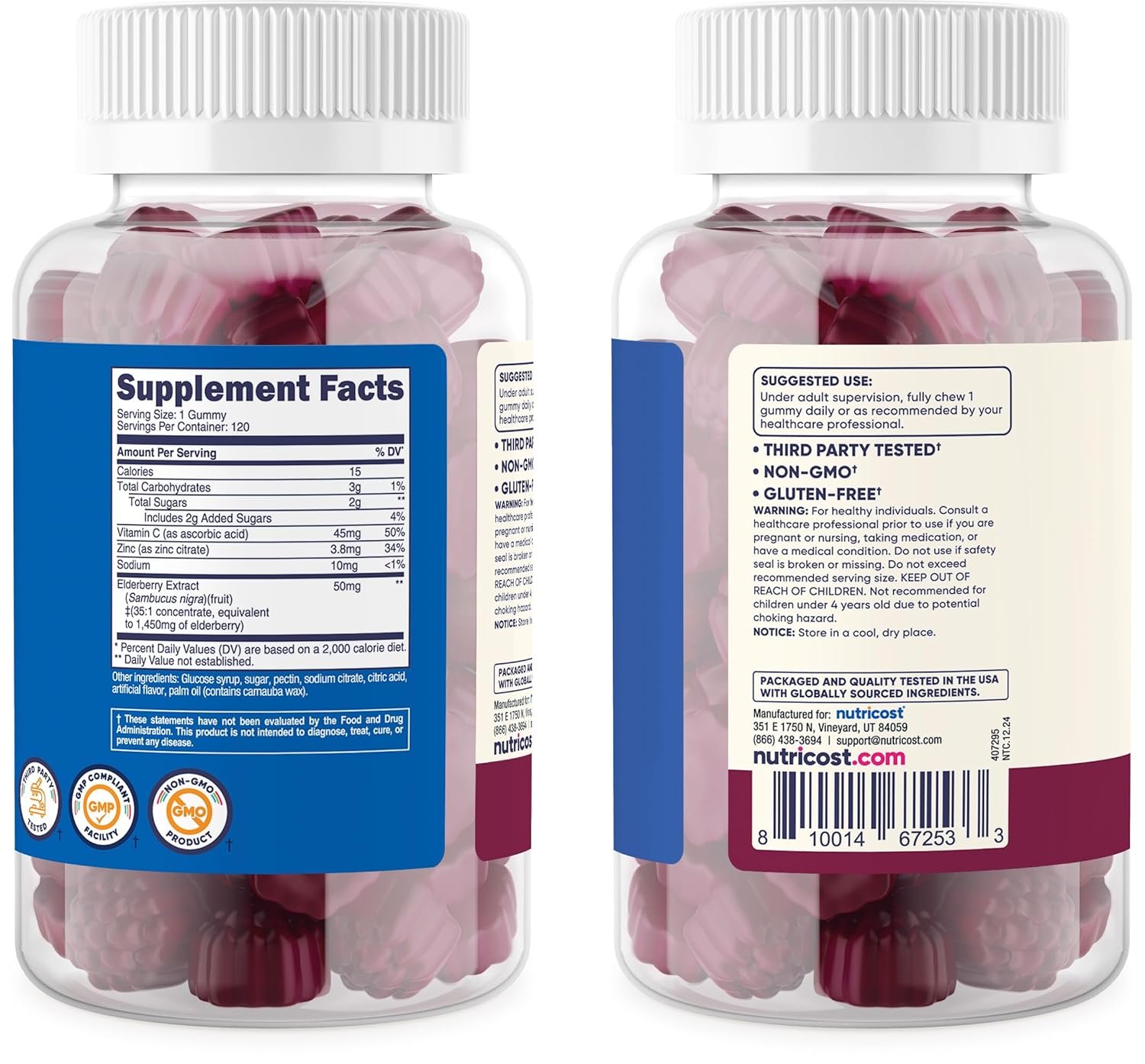 - 120 Elderberry Gummies In Each Bottle. Uses Child Lock Lids