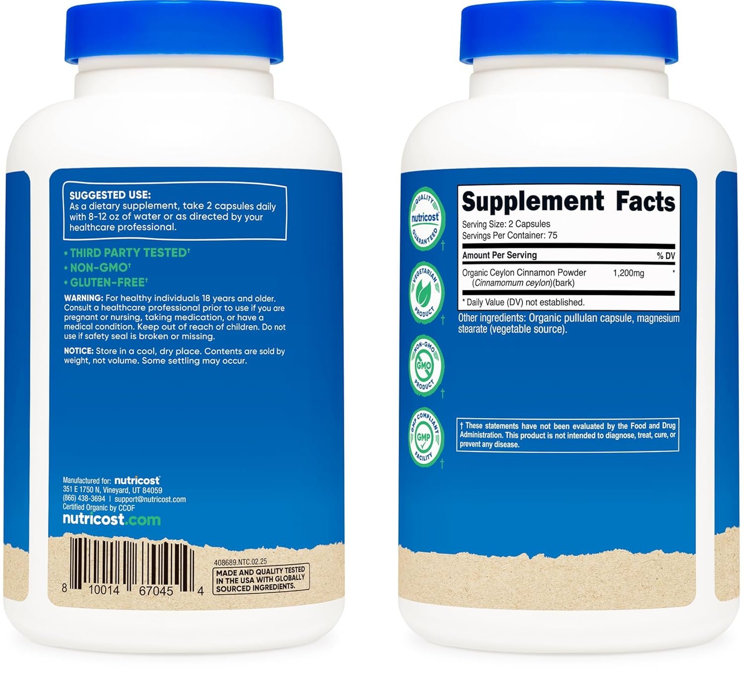 22 reviews for Nutricost Organic Cinnamon (Ceylon Cinnamon) 1,200mg Serving, 150 Capsules – Gluten Free, Non-GMO
