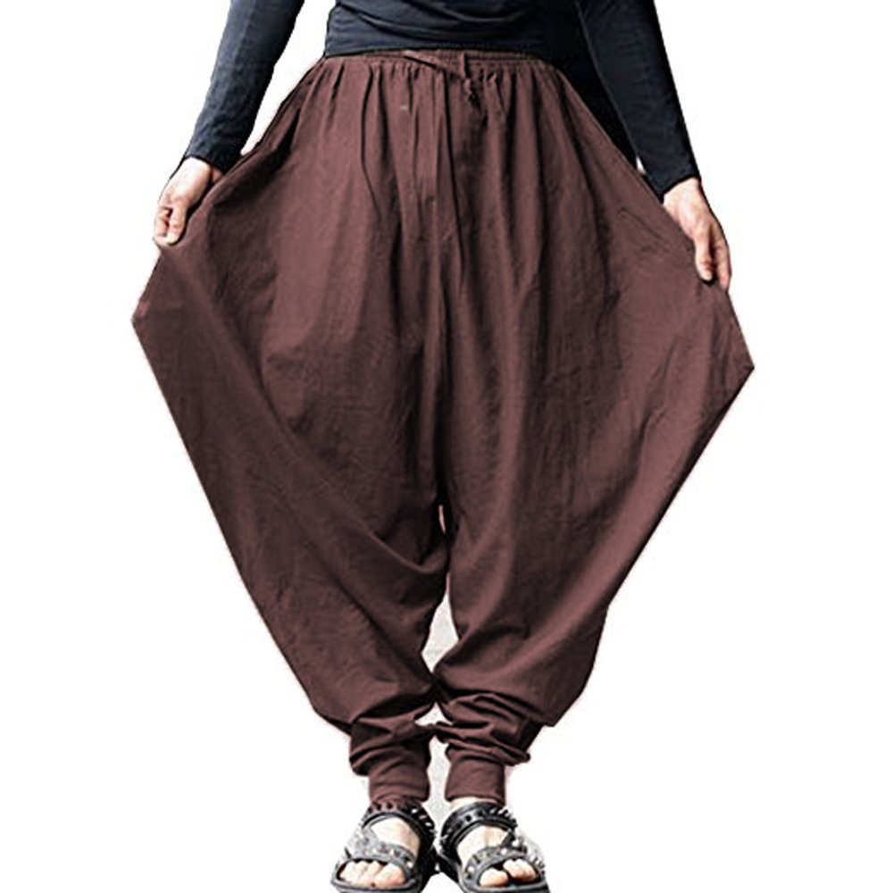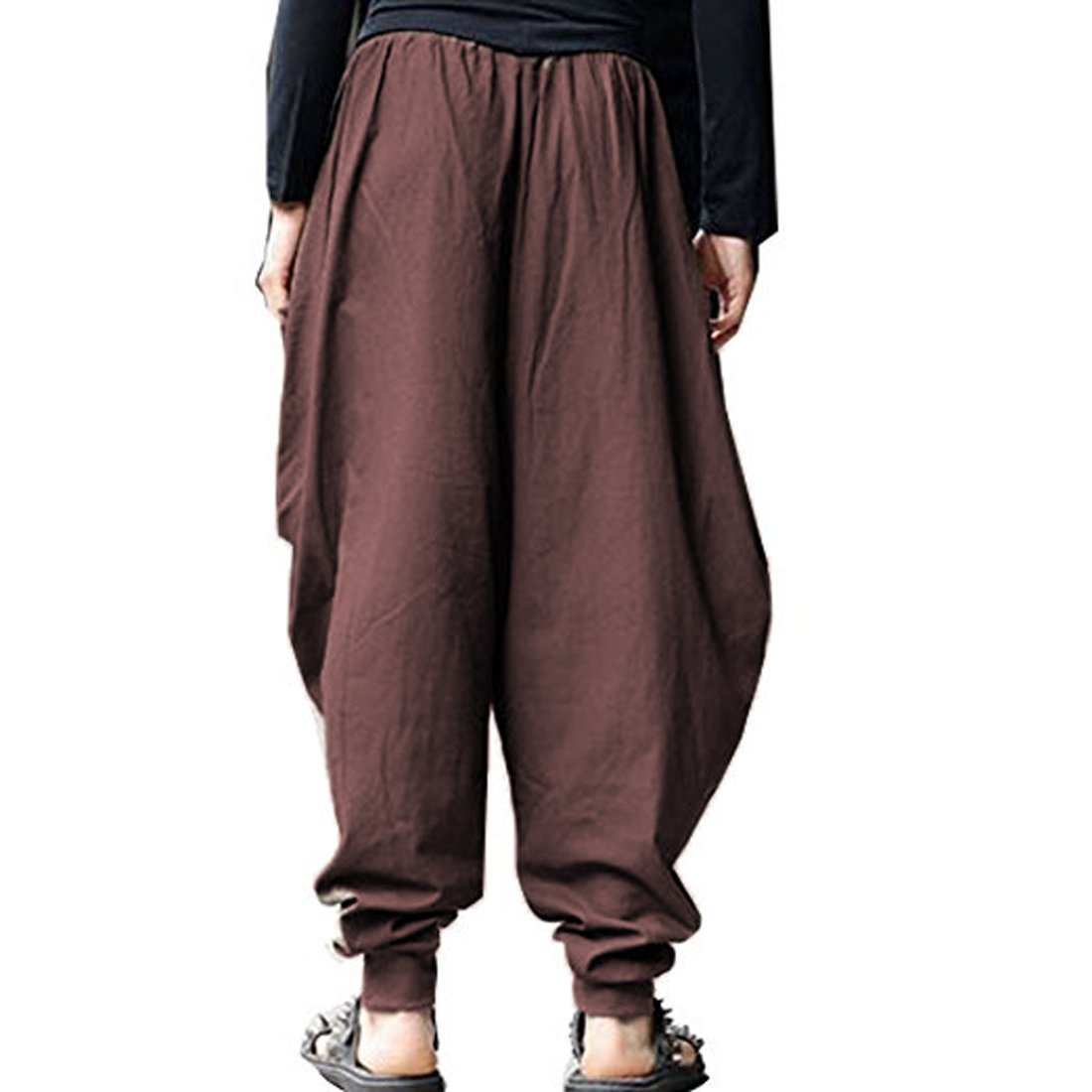 ONTTNO Men’s Harem Pants Loose Stretchy Waist Casual Hippie Trousers