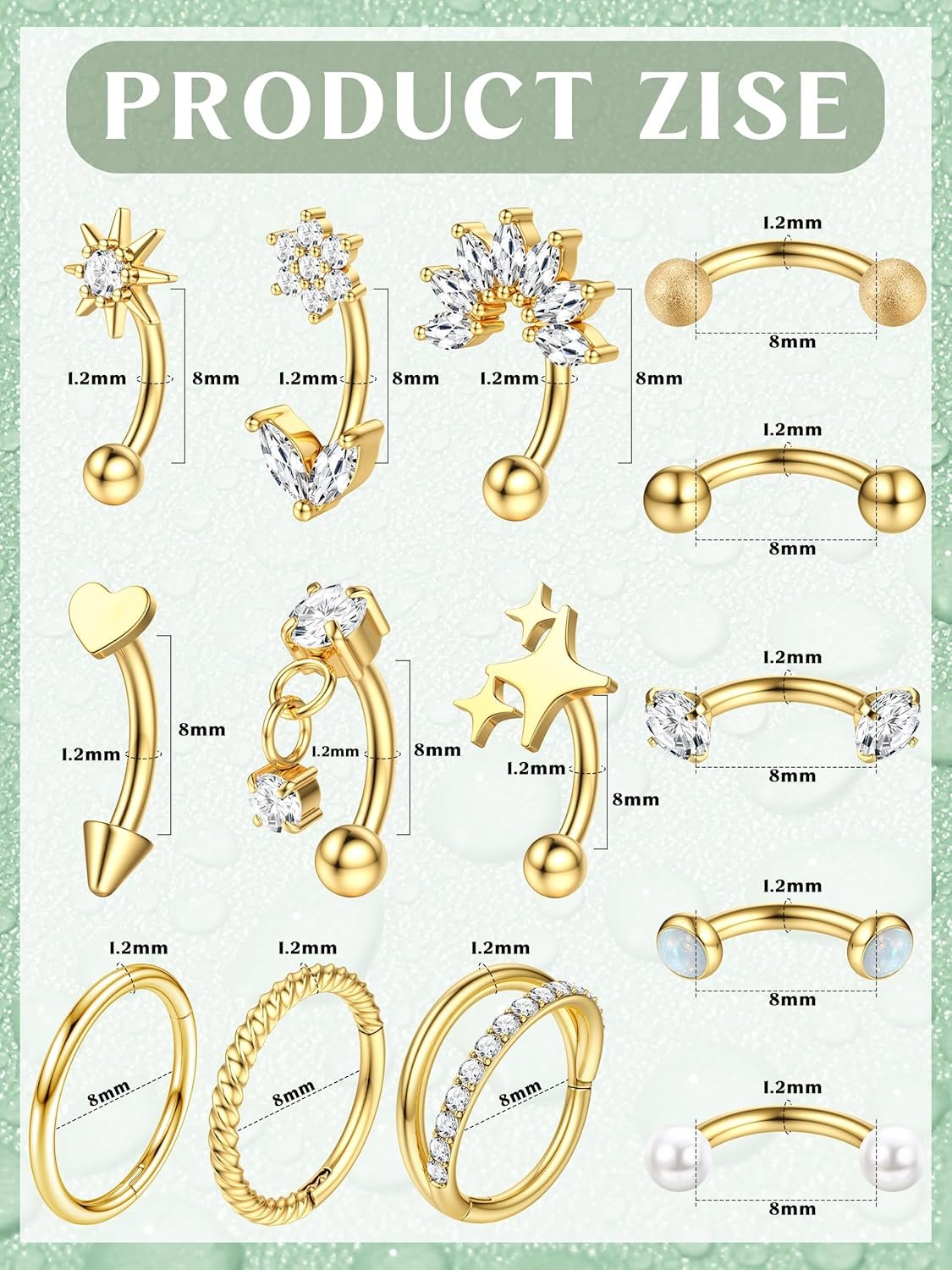 25 reviews for ORAZIO 16g Rook Piercing Jewelry Surgical Steel Vertical Labret Lip Jewelry Gold Eyebrow Piercing Rook Daith Earrings for Women Cartilage Curved Barbell Daith Tragus Piercing…