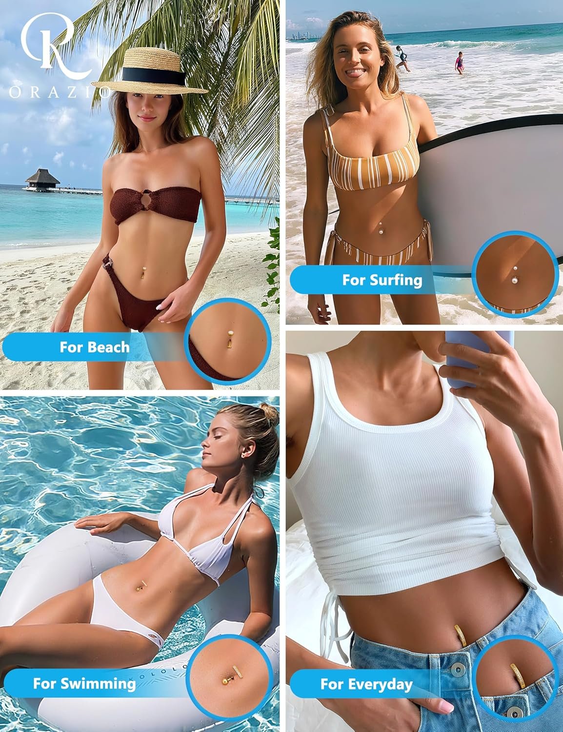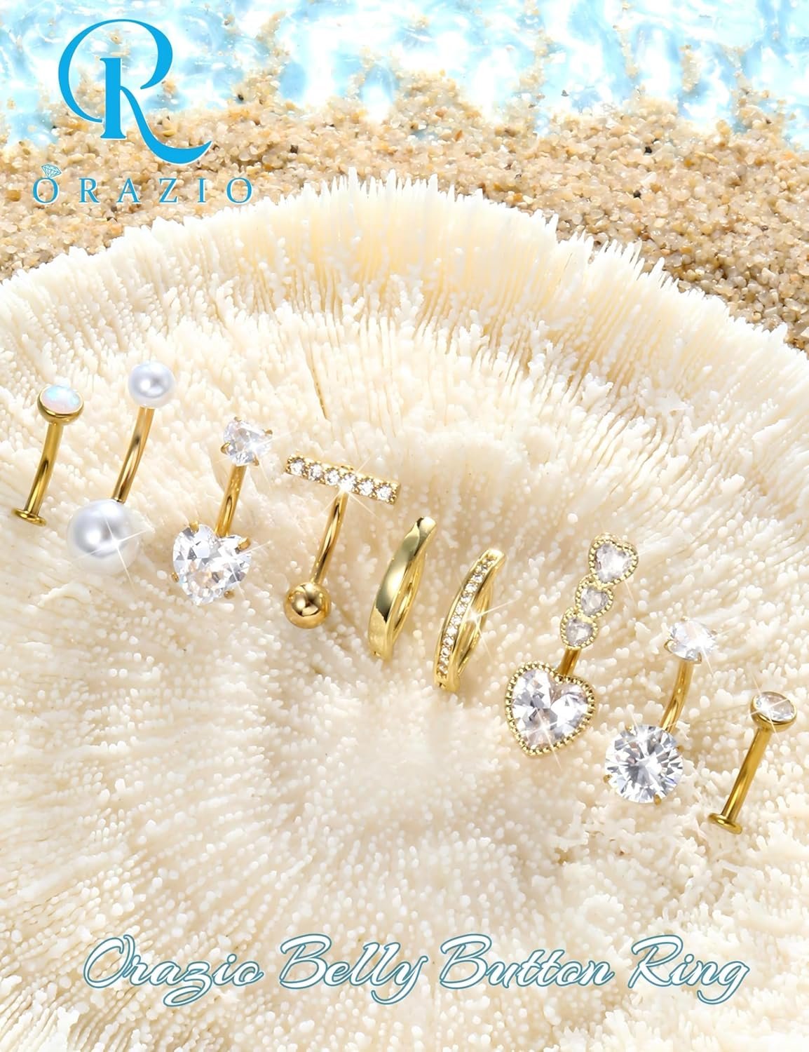 10 reviews for ORAZIO Gold Belly Button Ring – Hypoallergenic Surgical Stainless Steel Belly Rings for Women 14G CZ Opal Clicker Floating Belly Button Piercing Jewelry Pack Cute Dainty Navel…