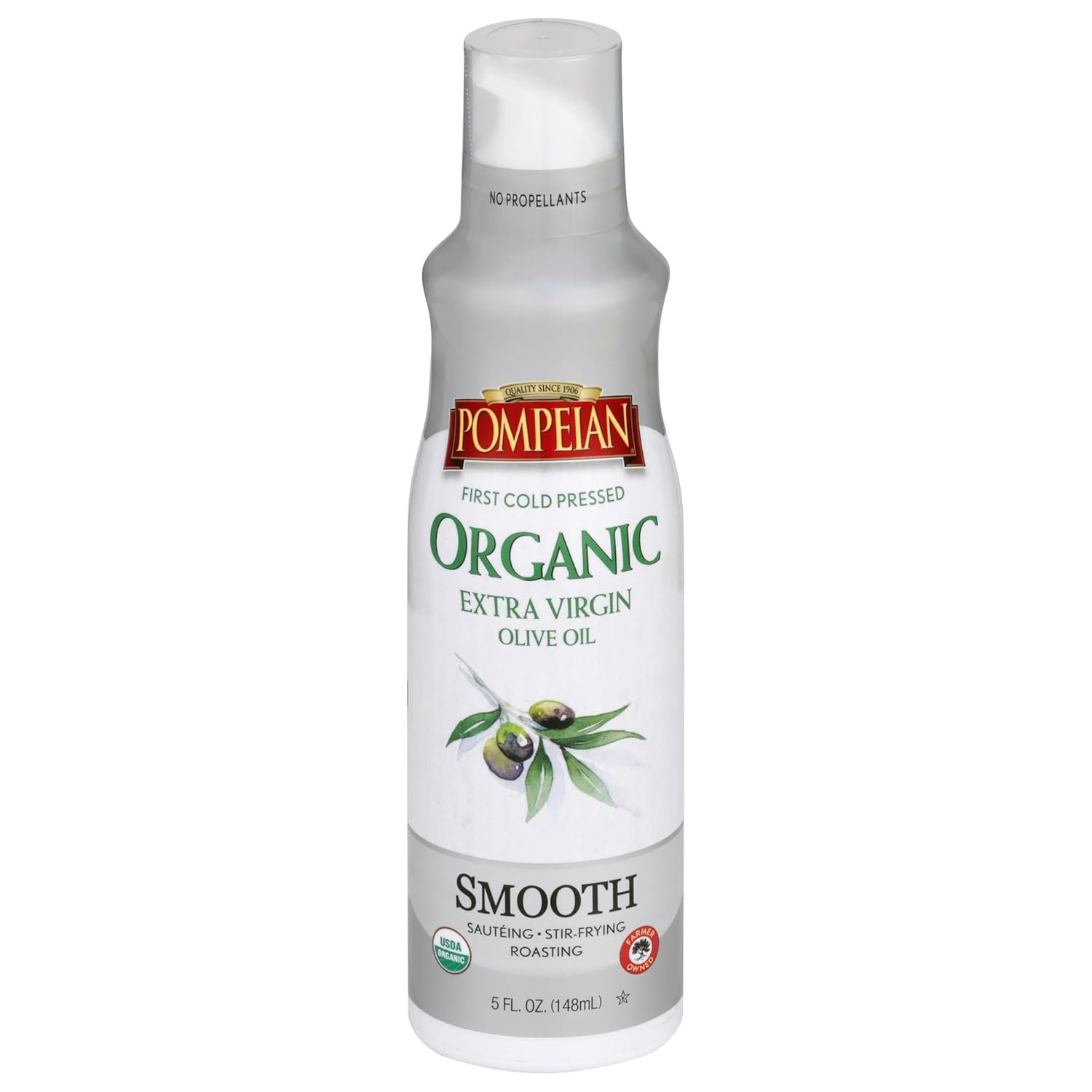Pompeian USDA Certified Organic Smooth Extra Virgin Olive Oil Non-Stick Cooking Spray, First Cold Pressed, Delicate Flavor, Perfect for Sauteing & Stir-Frying, No Propellants, 5…