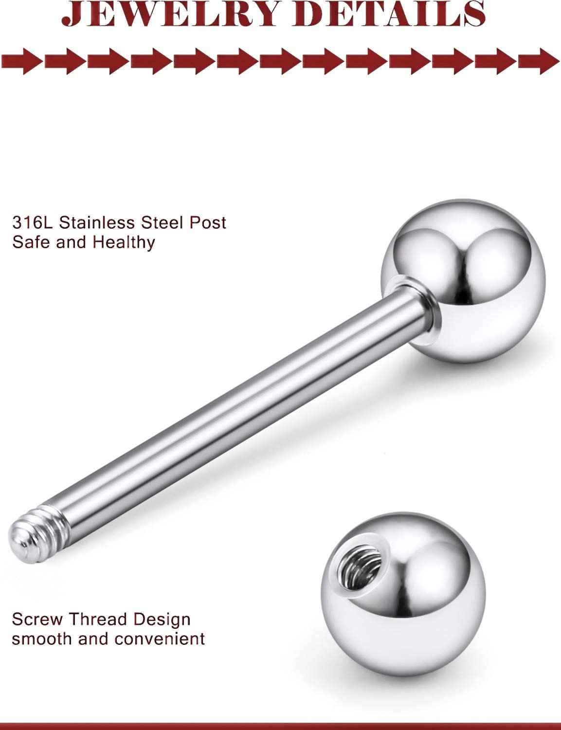 - 📐MEASUREMENTS📐 All Gauge: 14G(1.6mm), All Werable bar length: 3/4in(19mm), Screw Balls:0.2″(5mm).