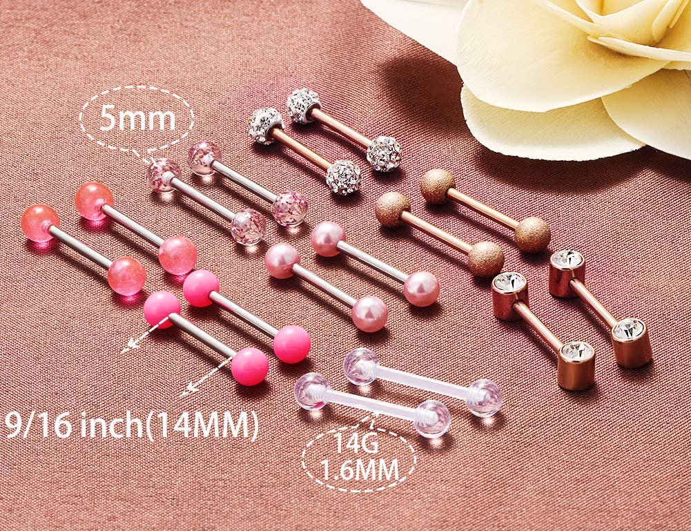 11 reviews for Prjndjw 8-12Pairs 14G 16G Nipple Rings Surgical Steel Tongue Rings Barbell Nipplering Diamond CZ Body Piercing Jewelry Retainer for Women Men 14mm Length Size