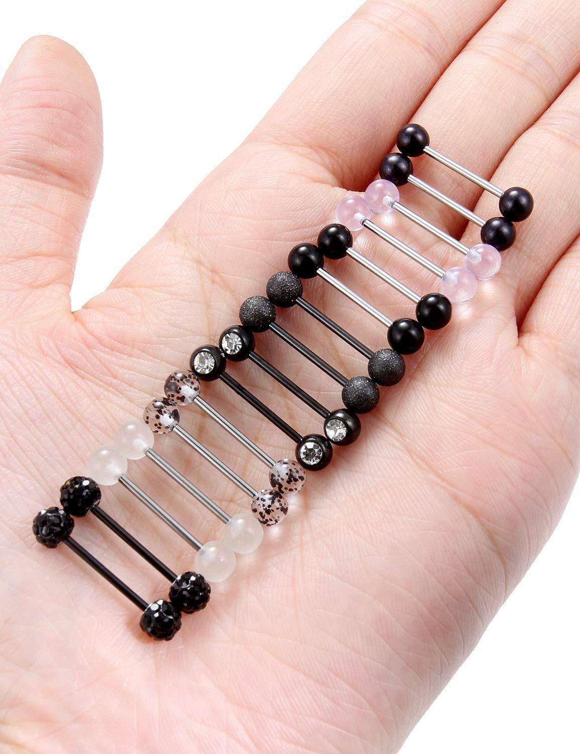 11 reviews for Prjndjw 8-12Pairs 14G 16G Nipple Rings Surgical Steel Tongue Rings Barbell Nipplering Diamond CZ Body Piercing Jewelry Retainer for Women Men 14mm Length Size