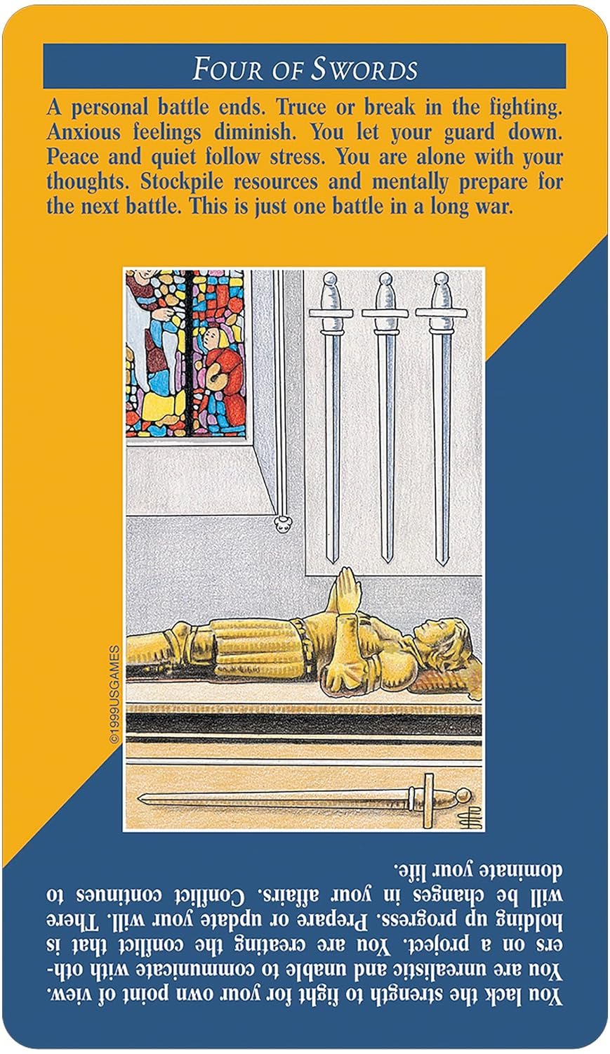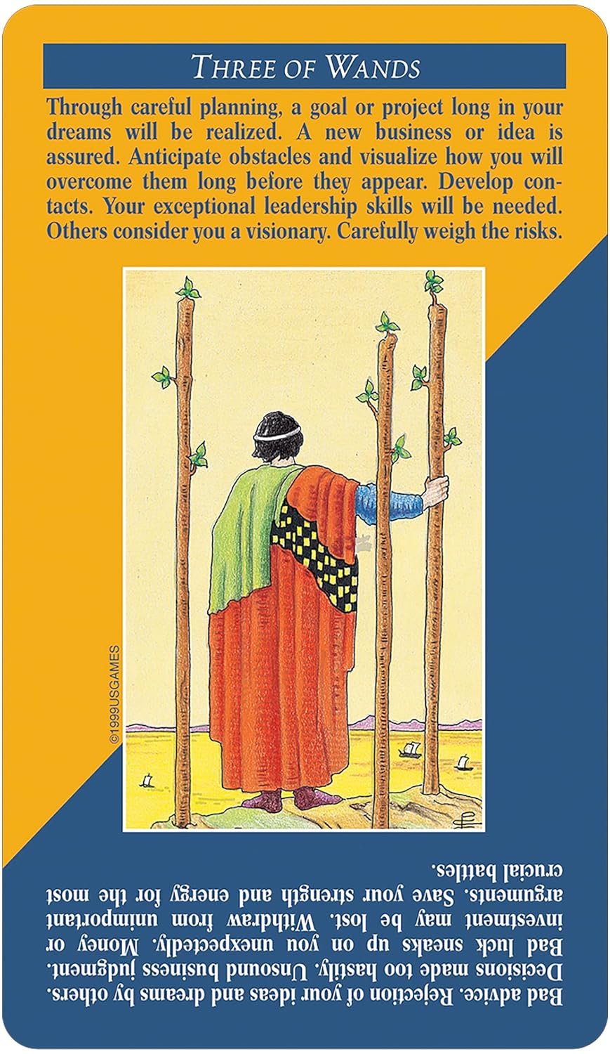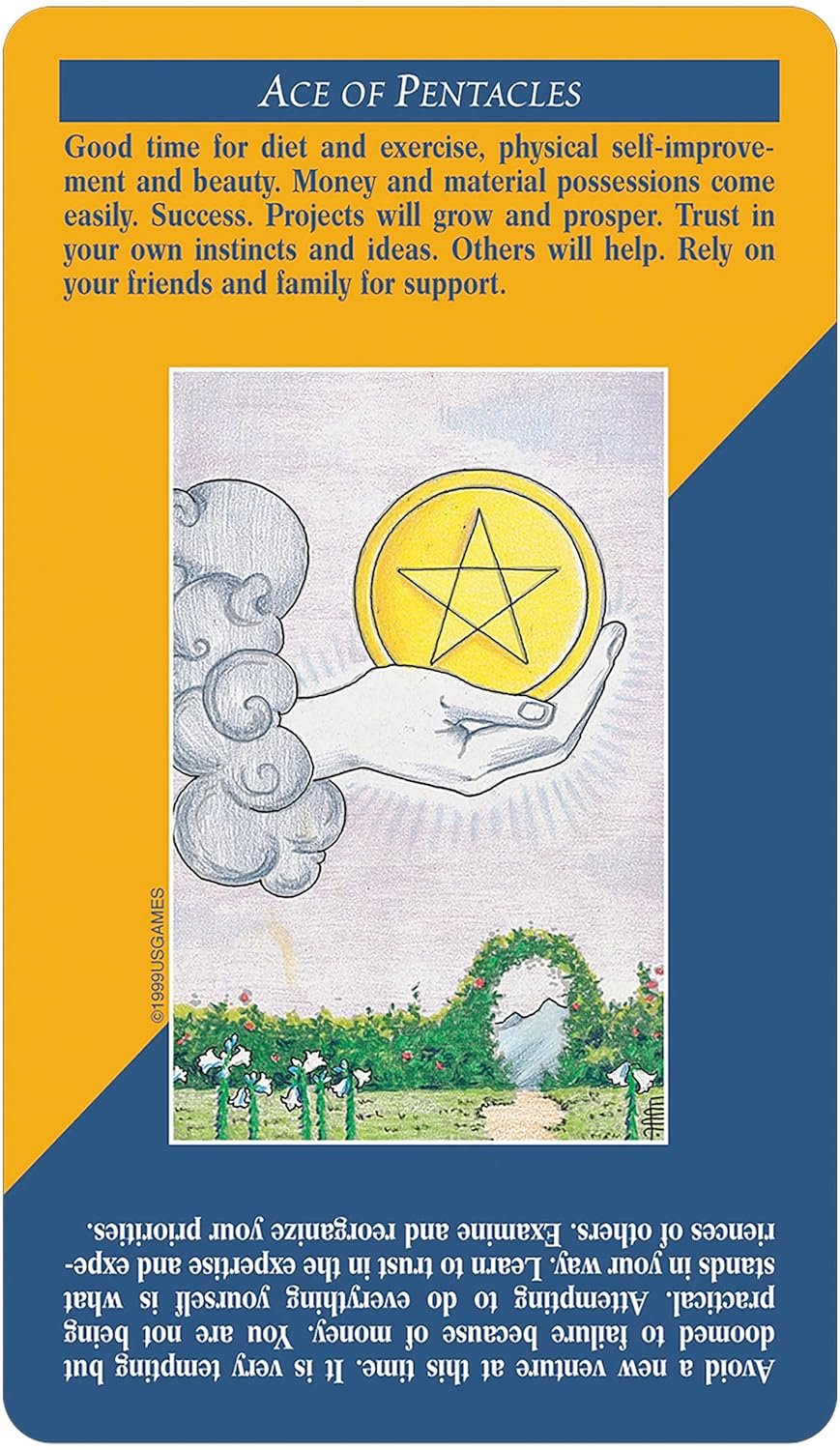 I found this deck when looking for more traditional tarot cards but also as I was wanting a tarot that would be relatively easy for me to interpret. With quick-reference keywords for both upright and reverse readings located directly on each card, this deck is a genius product that allows anyone to delve right into the tarot and get to know the cards immediately. The transaction for this product was fast and easy, shipping was quick, and the seller is first-rate. You can’t go wrong with this seller and this item! Cheers!