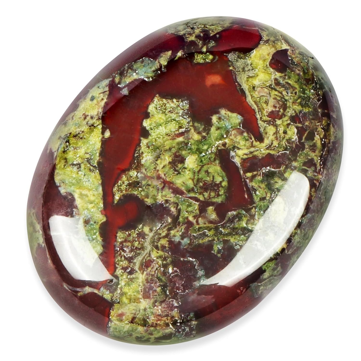 Like other Dragon Bloodstones I’ve bought, the pictures always show much more red. That being said, the stone I received is definitely a nice specimen; however, it could use more “blood” and less stone.