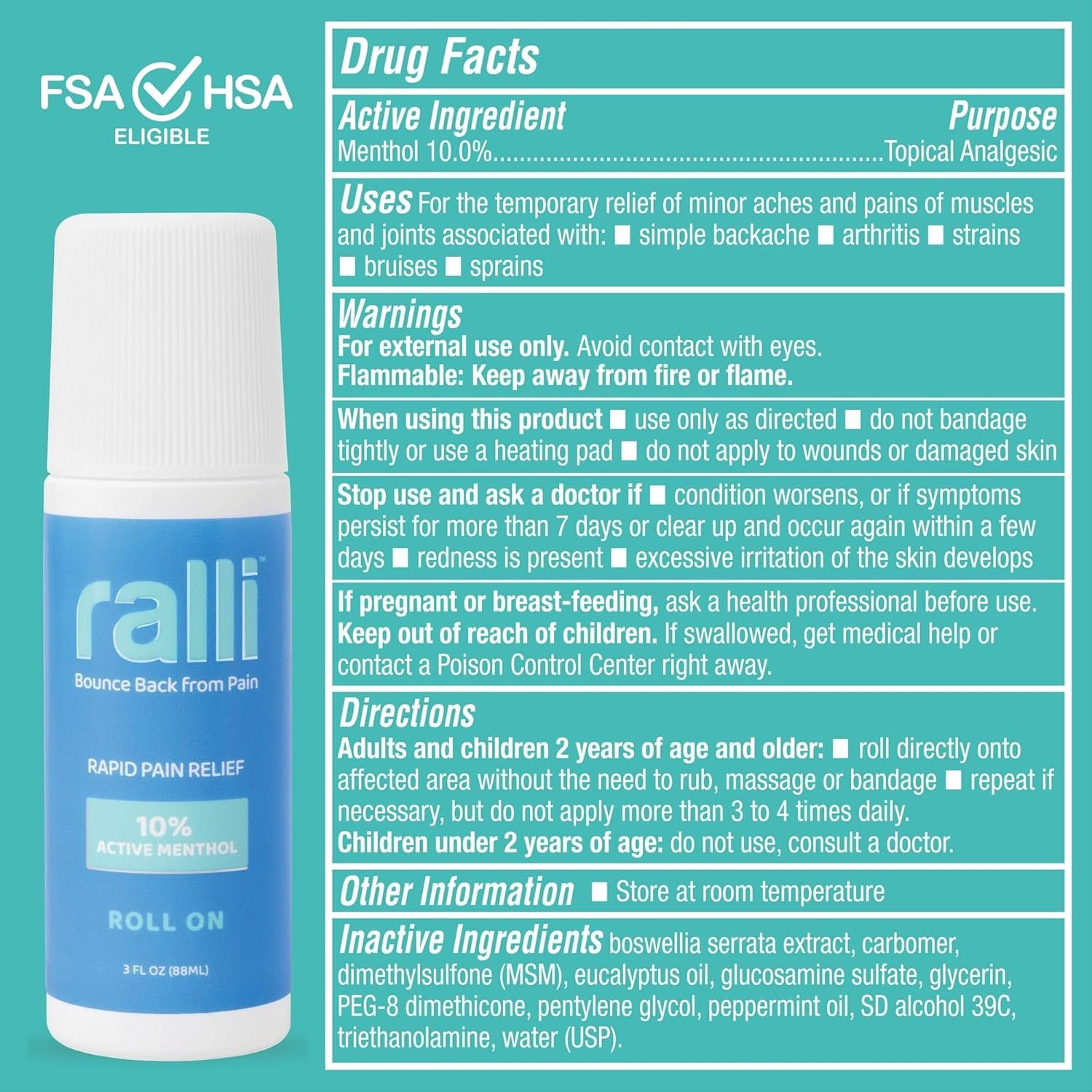 - HIGH PERFORMANCE, AMAZING VALUE: ralli contains pharmaceutical-grade ingredients and 10% Active Menthol; HSA and FSA Eligible
