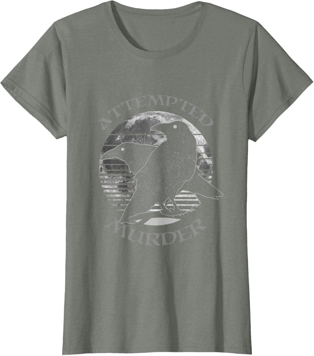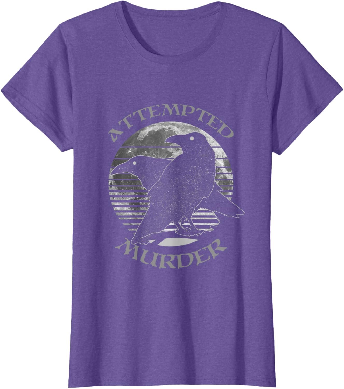 Raven Crow Attempted Murder Retro Moon Wiccan Pagan Gift T-Shirt