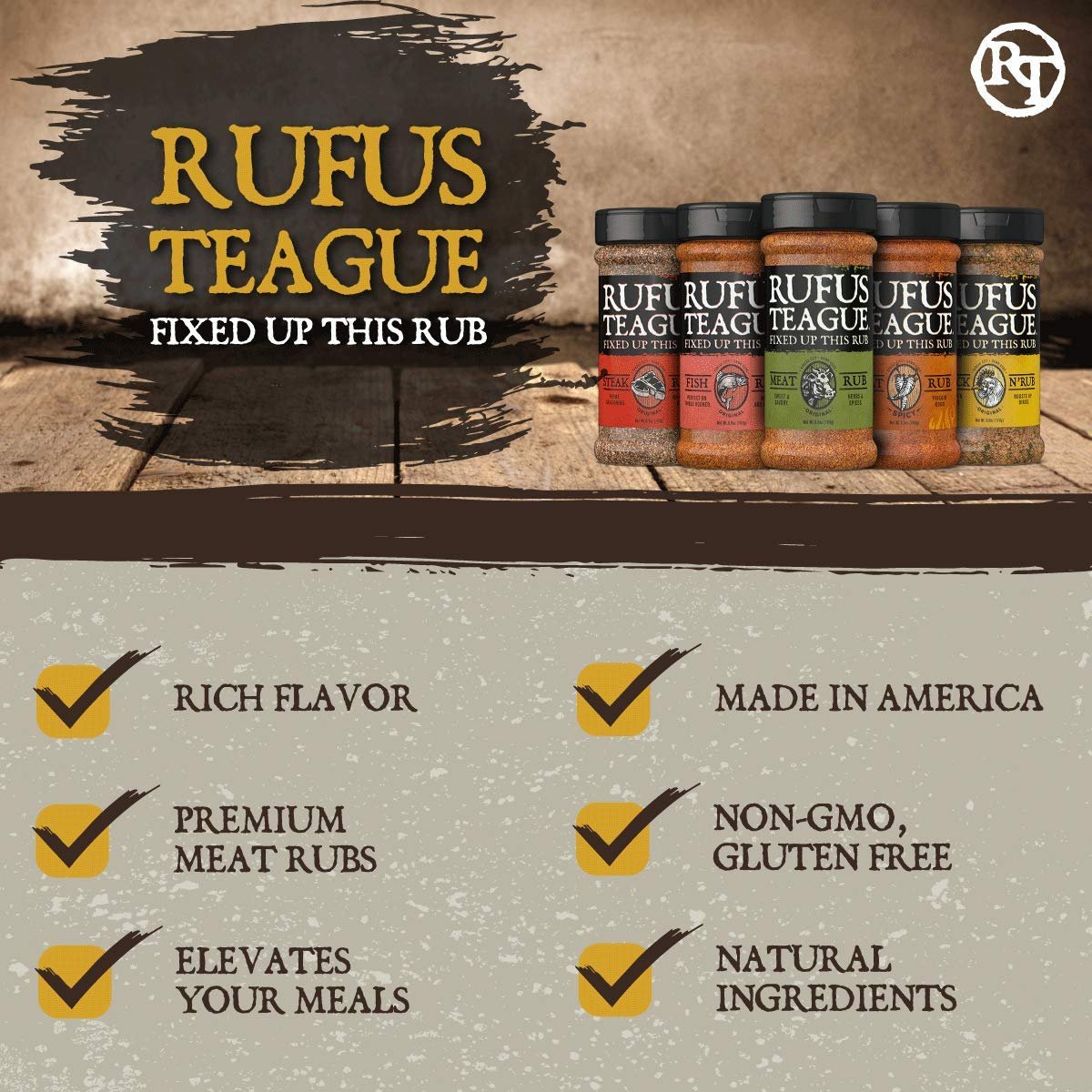 - RUFUS TEAGUE: BBQ DONE RIGHT: Born from real BBQ traditions, Rufus Teague is the trusted name for backyard heroes and pitmasters. Whether you’re upgrading your grill spice set or looking for the perfect steak seasoning set, you’ll get bold, unmatched flavor.
