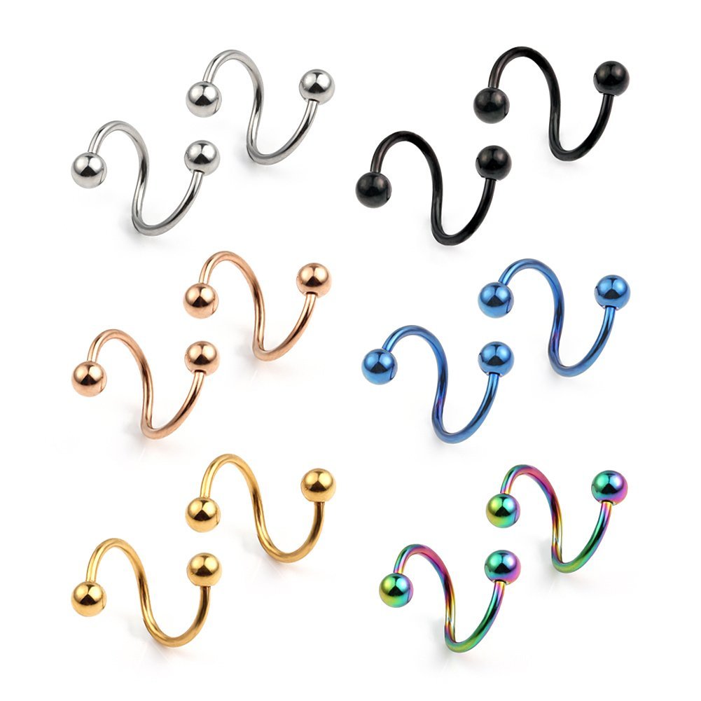 Ruifan 16G Stainless Steel Twist Ear Plug Earring Spiral Helix Stud Lip Ring Body Piercing Jewelry 8mm 10mm