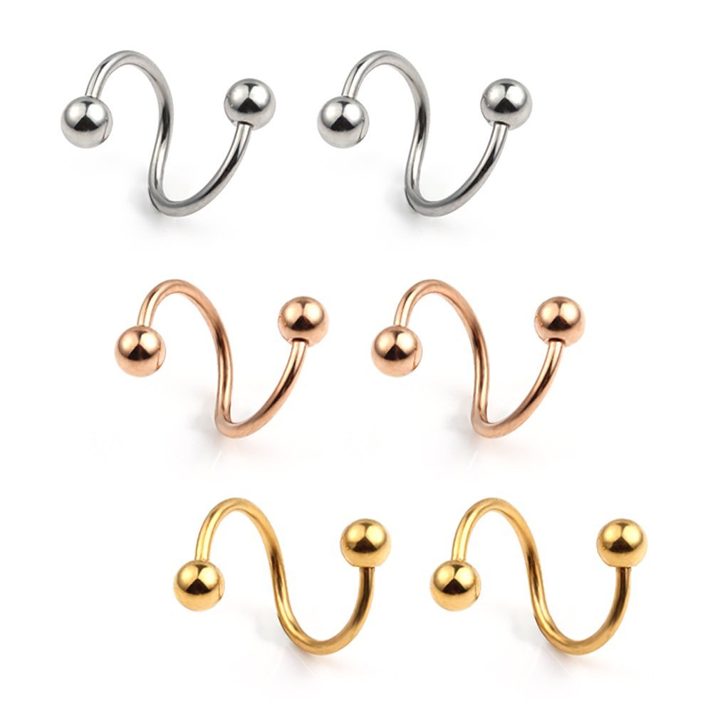 The Ruifan spiral rings are stylish and colorful. However, the pairs all face the same direction, making it difficult to wear on both ears. At least in my case. I have my tragus pierced, and was very excited to try these. I could only get the right side to fit properly, while the left was uncomfortably twisted and looked backwards in the mirror. I am upset because I wanted to wear them as a set, but I can only use one piece at a time. Which makes the rest of the pairs a waste. Again, if you have a lip piercing or a single cartilage piercing, these may work.