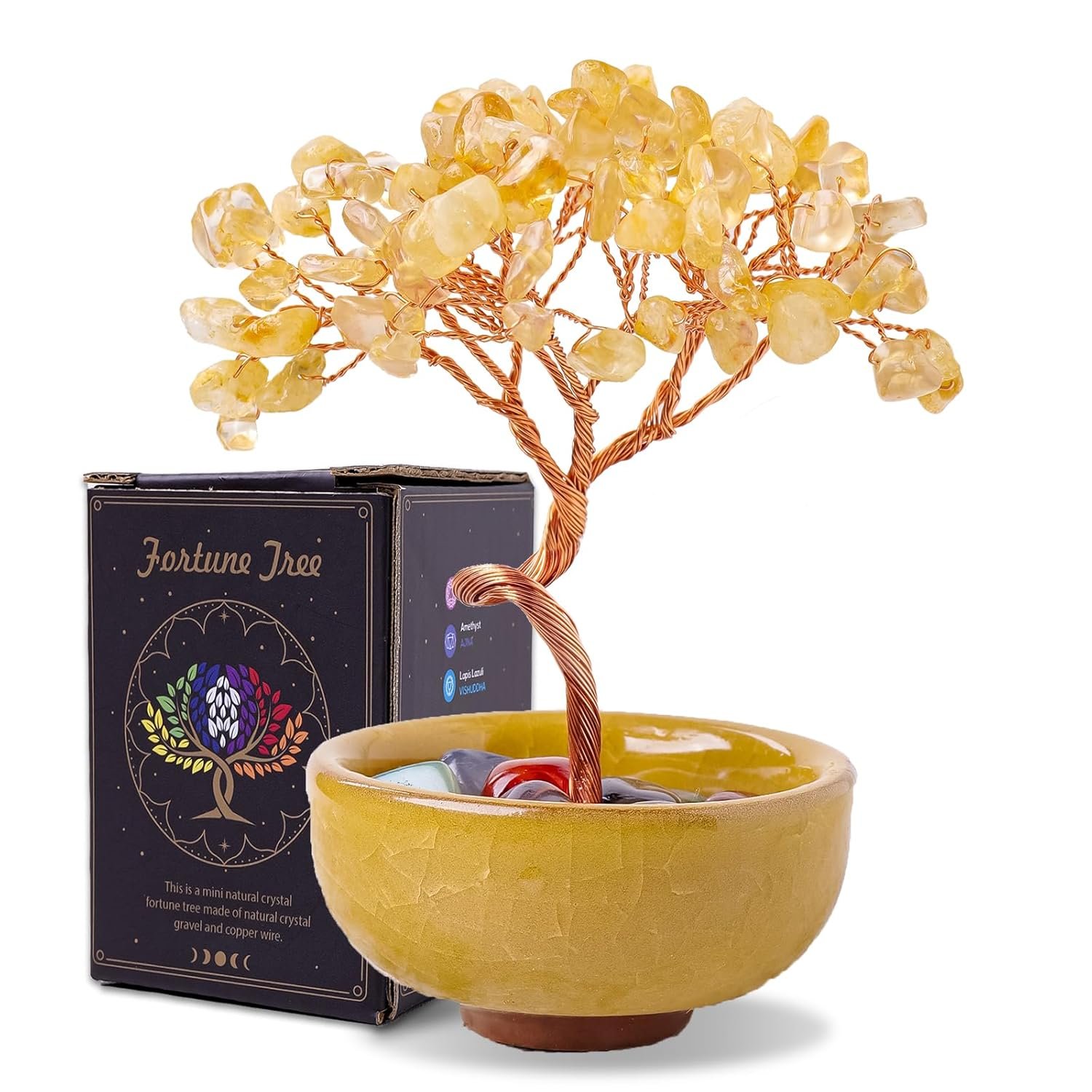 Runyangshi Citrine Tree of Life – Natural Crystal Gemstone Tree for Feng Shui, Money, Luck, Home Decor, with Spiritual Gifts for Women Men