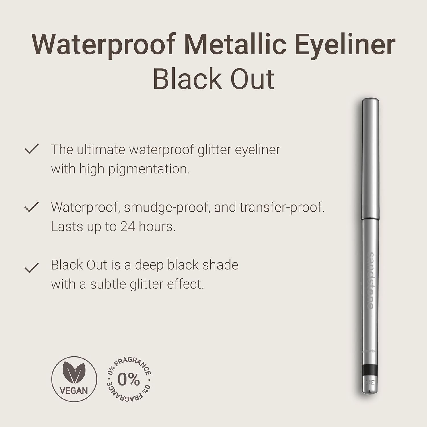Sandstone Scandinavia Hypoallergenic Waterproof Eyeliner – Fragrance Free Metallic Black Eye liner – Vegan and Cruelty Free Eye Pencil – Eyeliner Pencil for Sensitive Eyes (Black)