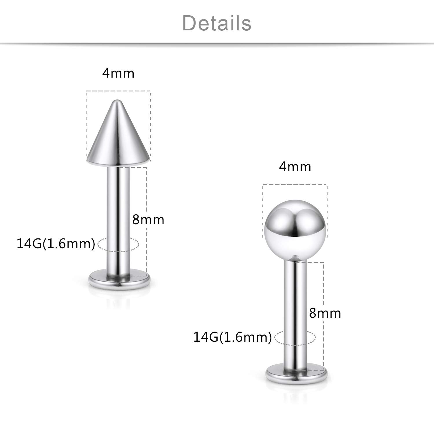 - Gauge(Size): 14G(1.6mm); Bar Length: 5/16″(8mm); Ball/Spike Dia.: 4mm
