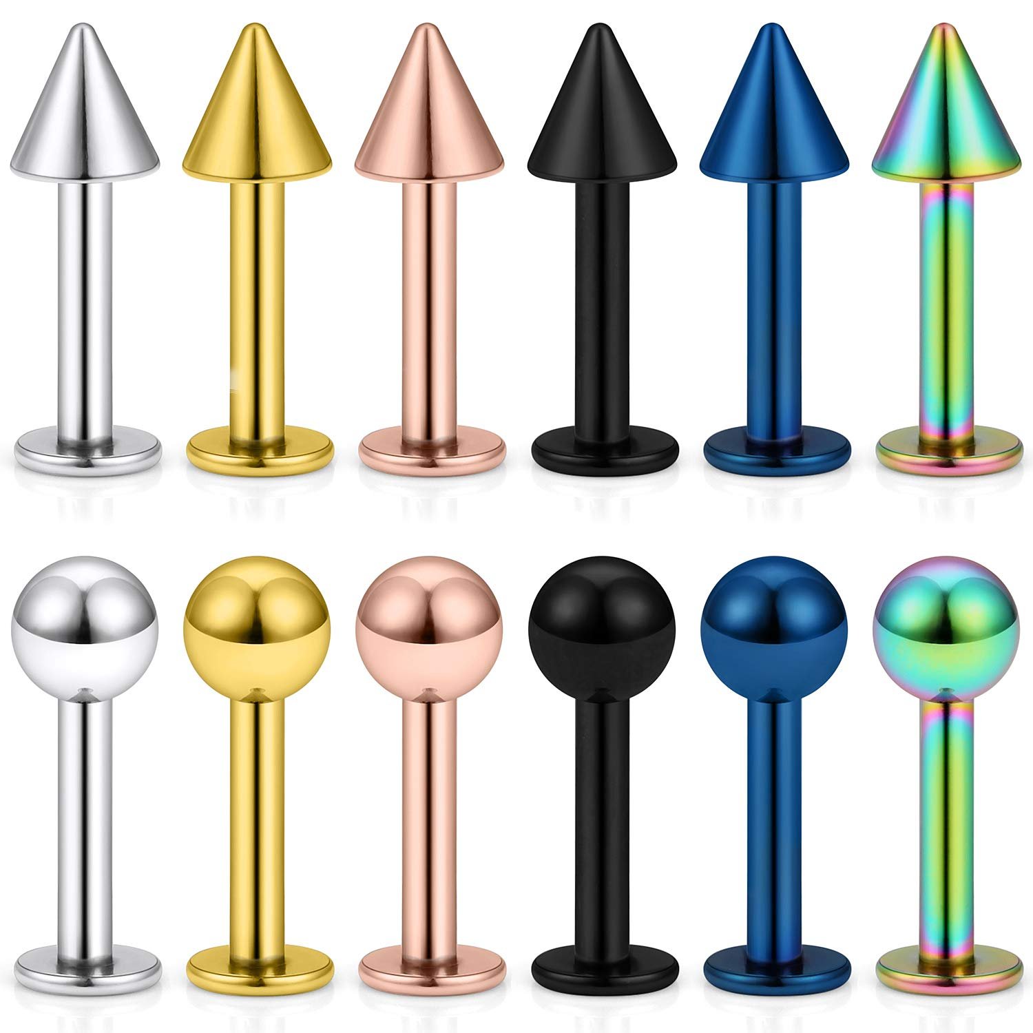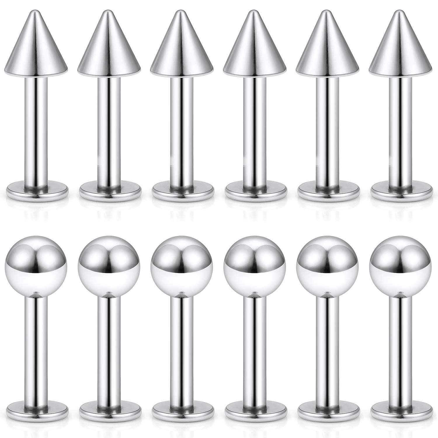 SCERRING 12PCS 14g Stainless Steel Balls & Spikes Labret Monroe Lip Cheek Tragus Cartilage Helix Earring Ring Body Piercing Jewelry 8-14mm