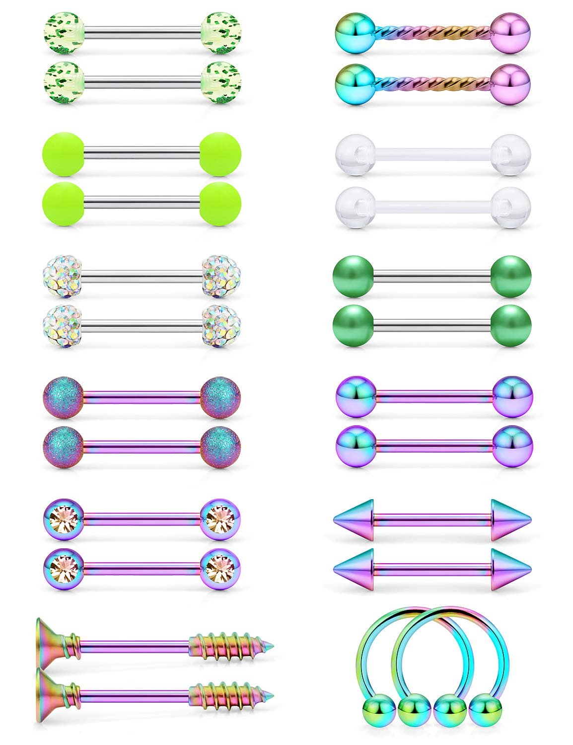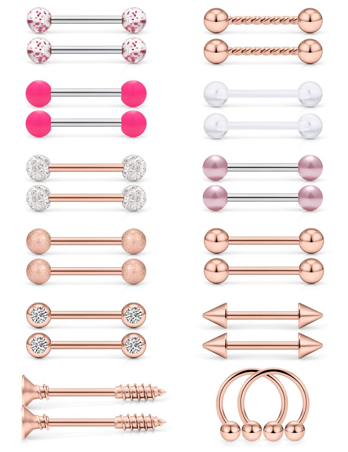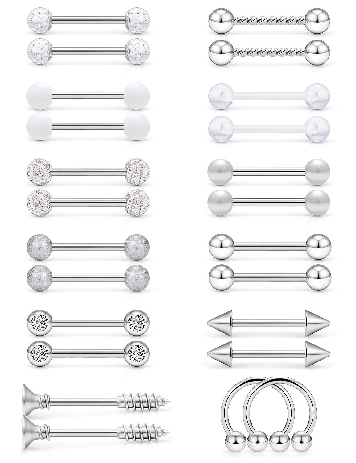 - Including 12 Pairs 14 Gauge 316L Surgical Steel Nipplerings Piercing Jewelry For Women, Mix-Styles(Each Style One Pair), Multi-functional Piercing for Nipple, Tongue, Ear Cartilage and so on. Reasonable Price For Body Jewelry,Deserve To Purchase.