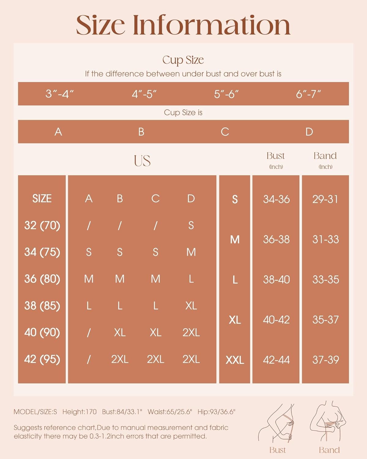 These bras are so comfy. They are well made and fit perfectly. I wear a 36 c and ordered a large. They really are a steal for this price!!!