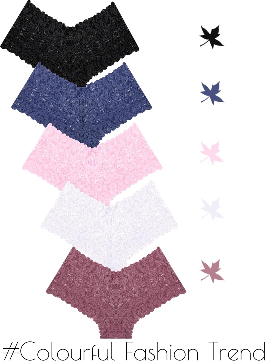 - UNDERWEAR WOMEN PACK (5 PACK MULTIPLE COLORS): 5 fashion-forward lace boyshorts in assorted colors, perfect for mixing & matching with bras. Fashionful colors,Boost your confidence and sex appeal with every wear.