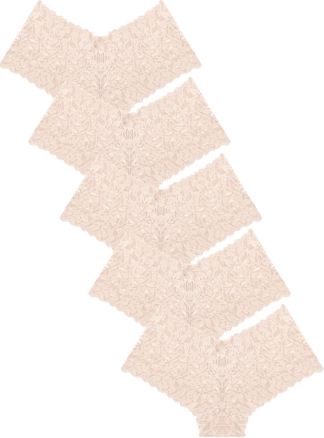 FINETOO 6 Pack Sexy Underwear for Women Silky Seamless No Show Panties Ladies Lace Bikini Lightweight Cheeky Hipster