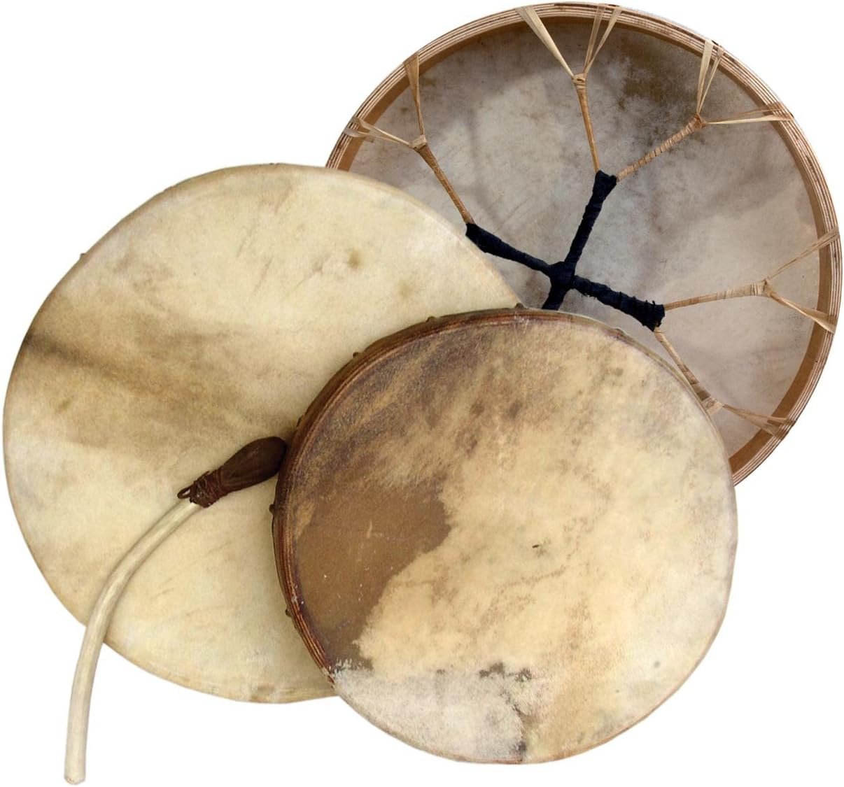 Nice beginners drum. I have never used one before so don’t have anything to compare it to, nicer ones online made with buffalo skin are quite expensive so I went with this one to start. I got one of the larger size ones I don’t recall exactly, but I will be getting two smaller ones for my teenager and my younger child so we can drum together. Looks like it’s well-made and quite sturdy, feels easy to hold too.