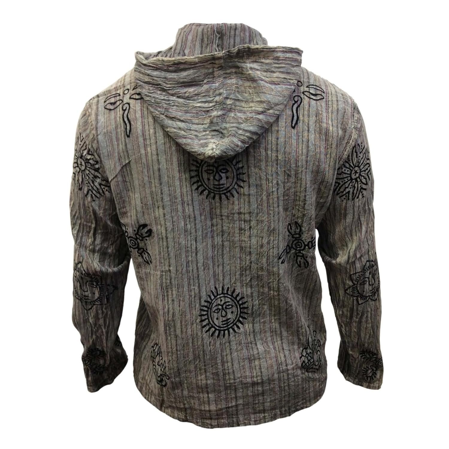 Shopoholic Fashion Mens Handmade Stonewashed Boho Hooded Shirt | Wooden Buttons & Front Pocket, Ethical Cotton Festival Shirt