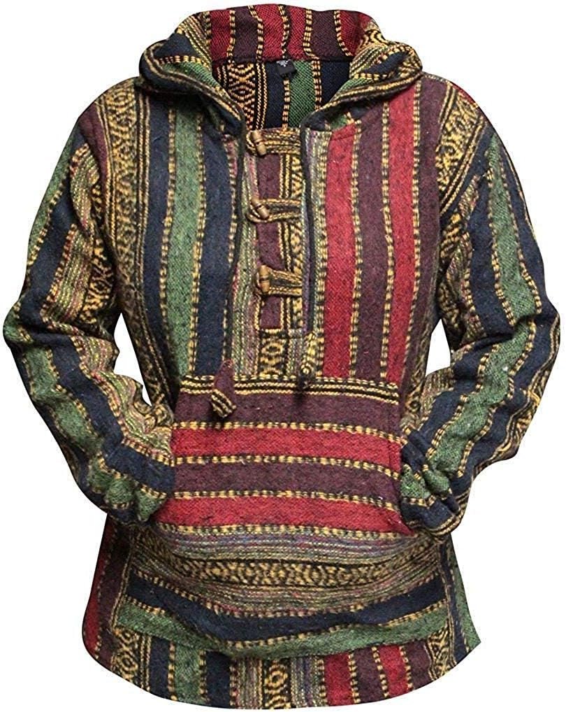 - 𝐔𝐍𝐈𝐐𝐔𝐄 𝐁𝐀𝐉𝐀 𝐃𝐄𝐒𝐈𝐆𝐍: The handcrafted look with toggle closure and detailed Baja pattern makes this hoodie stand out. Perfect for adding a rustic touch to your wardrobe and a cute hoodie option for festivals or travel