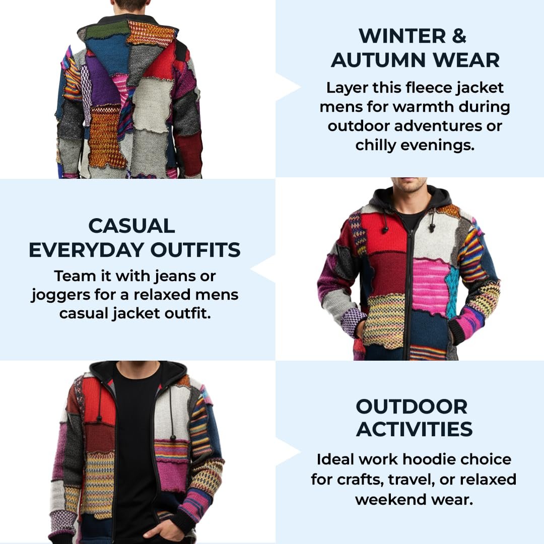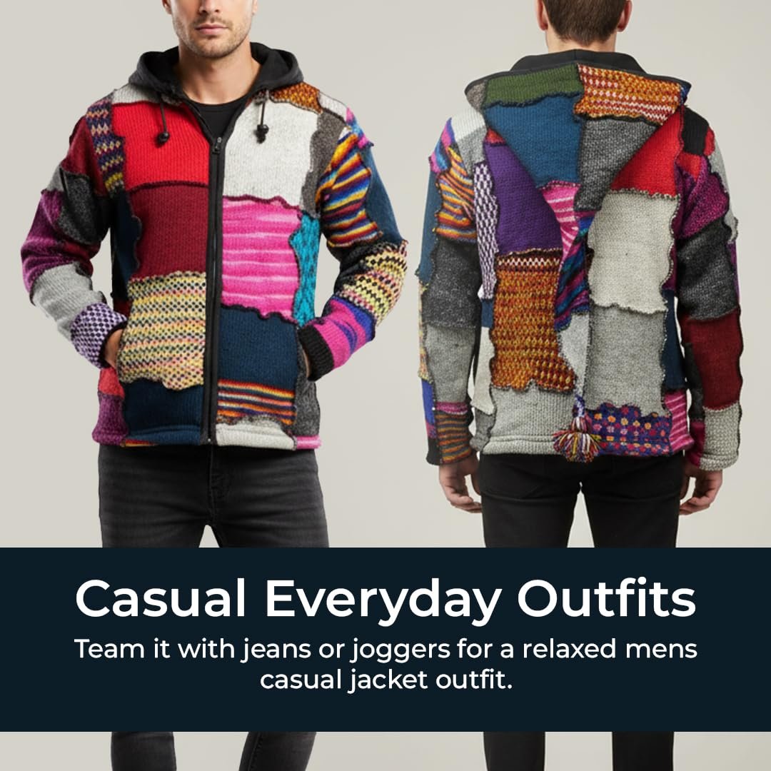 Disclosure50 reviews for Shopoholic FashionMen’s Tye Dye Patchwork Hippie Jacket Fleece Lined Festival Boho Hippy Sweater