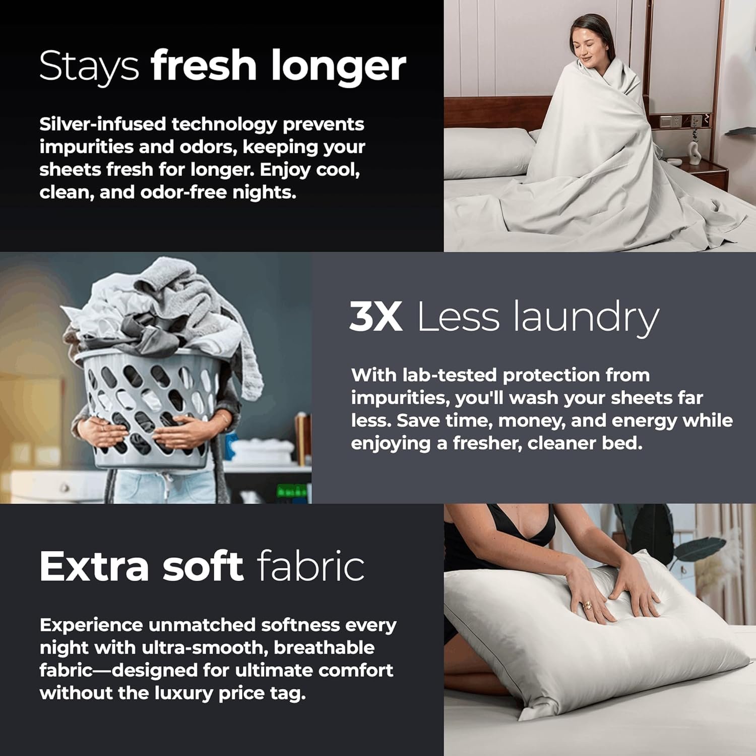 Silvery Silver Infused Bed Sheets Set – Ultra-Soft Temperature-Regulating Fabric with Self-Cleaning Technology™ That Stays Fresh 3X Longer for Hygienic Sleep