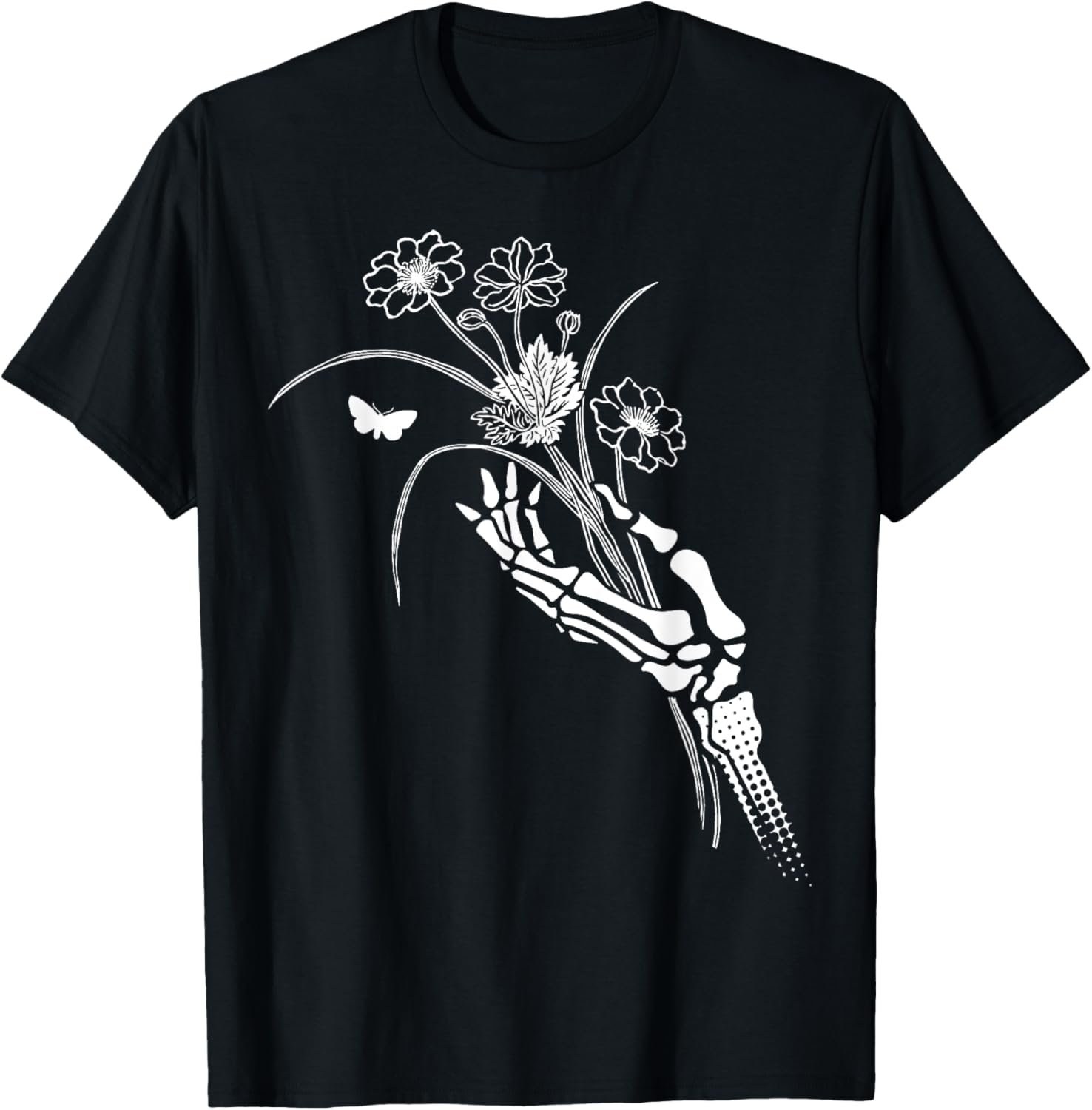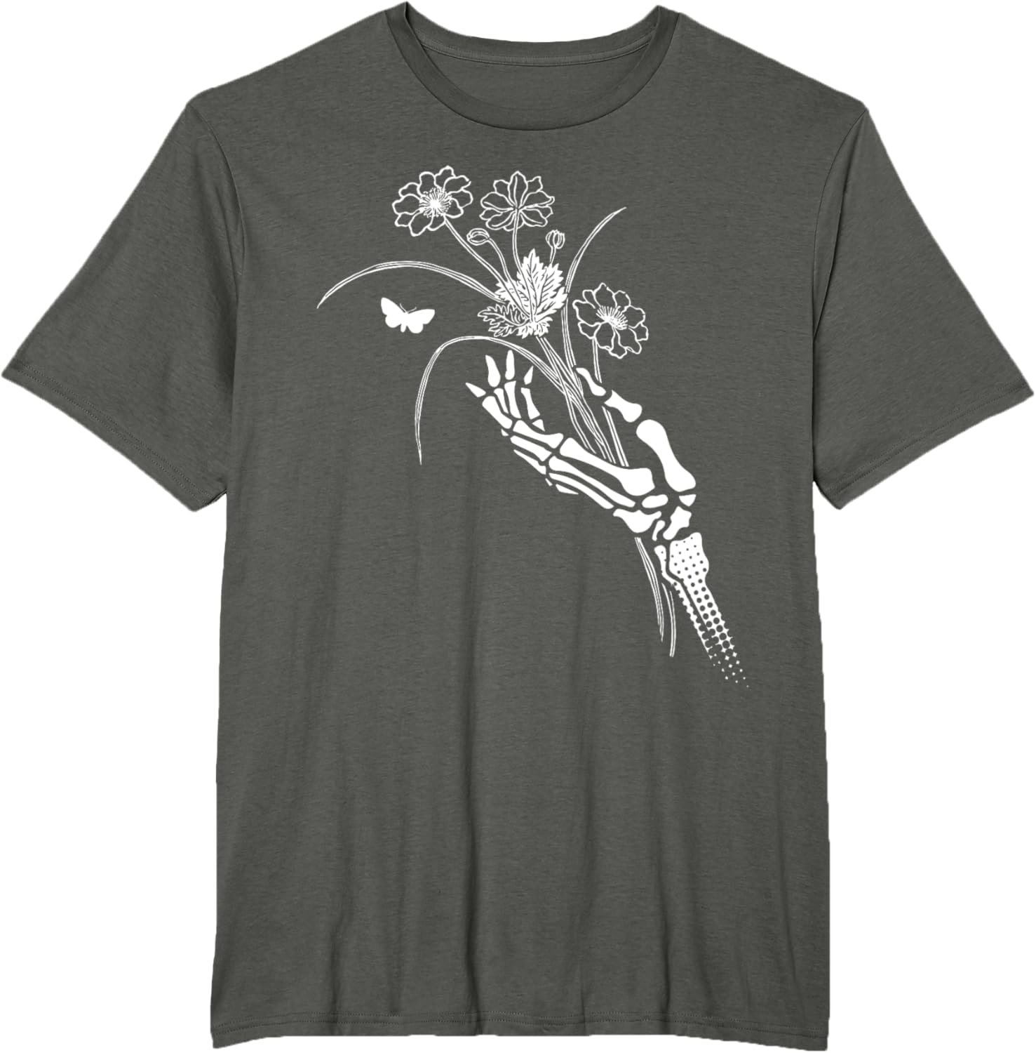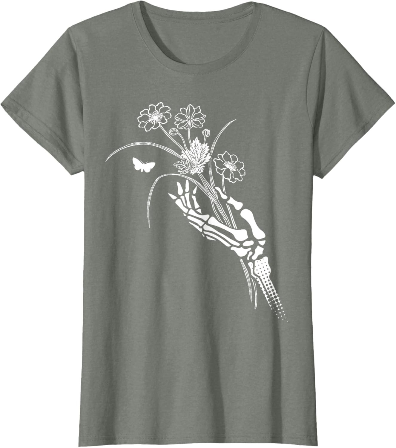 Skeleton Hand Holding Flowers Folkloric Wiccan Nature Witch T-Shirt
