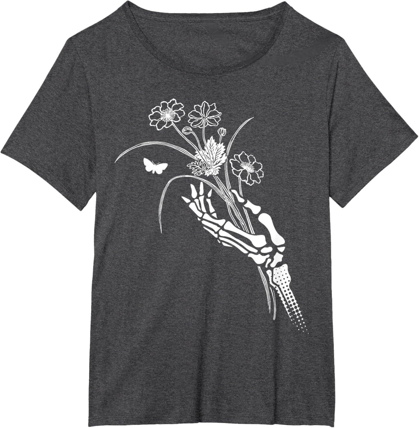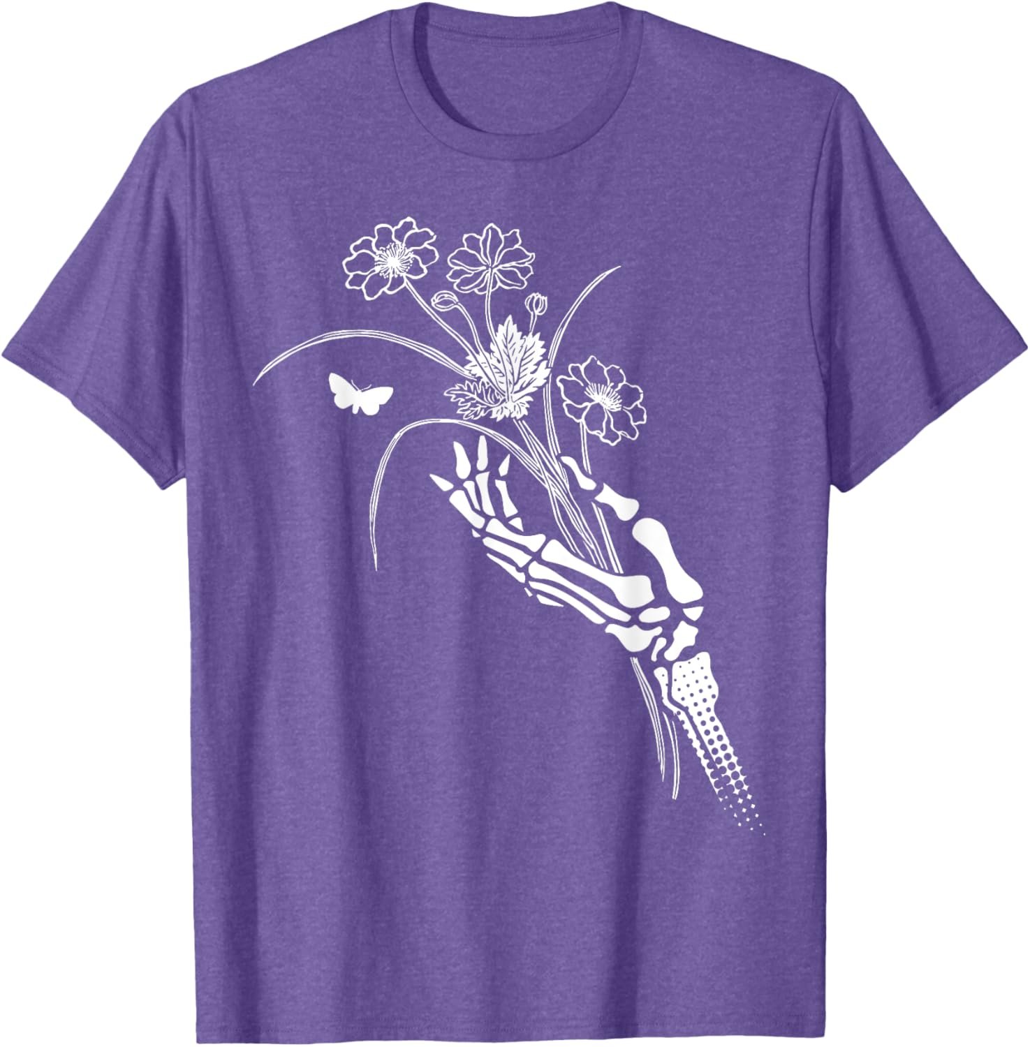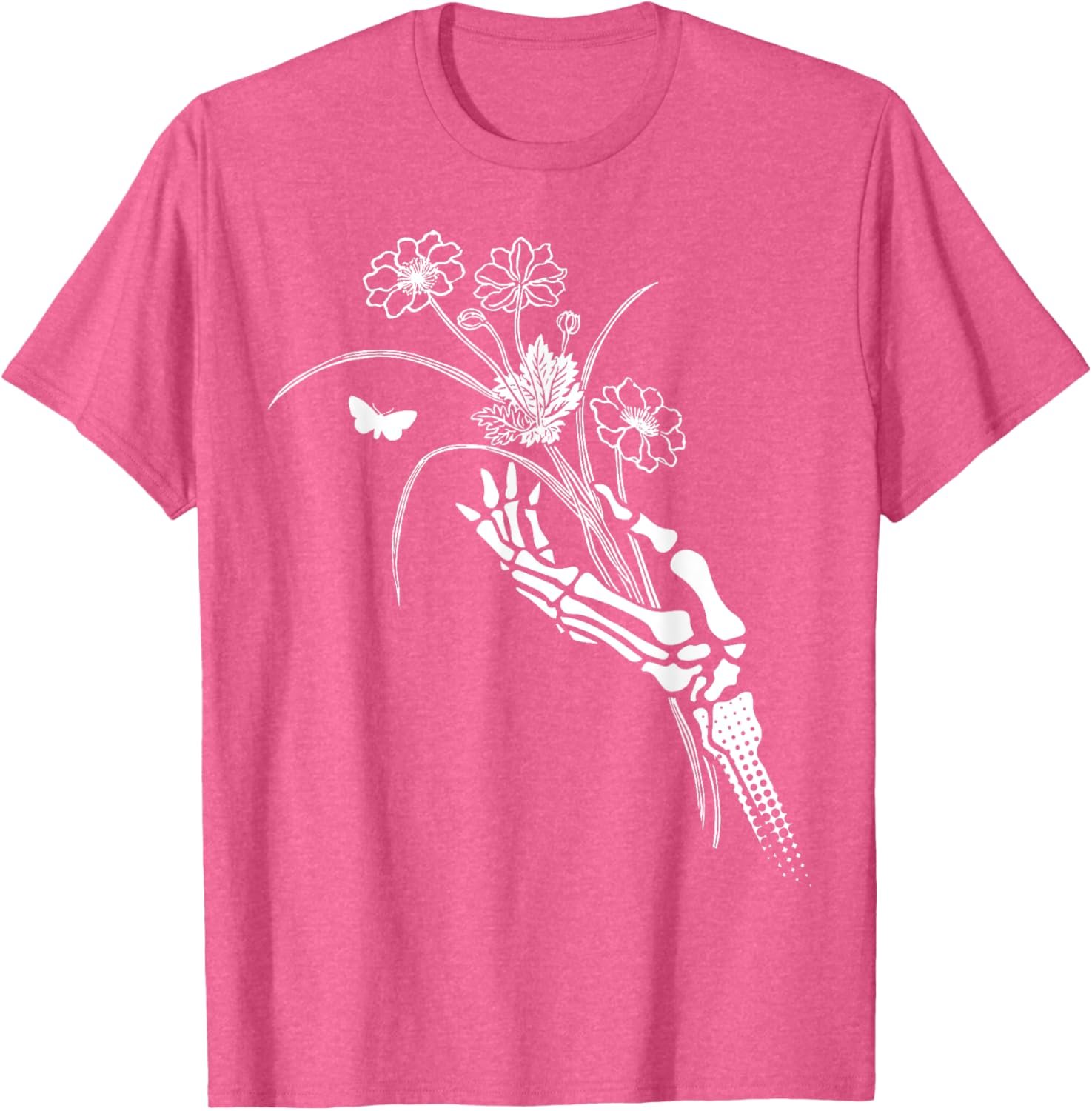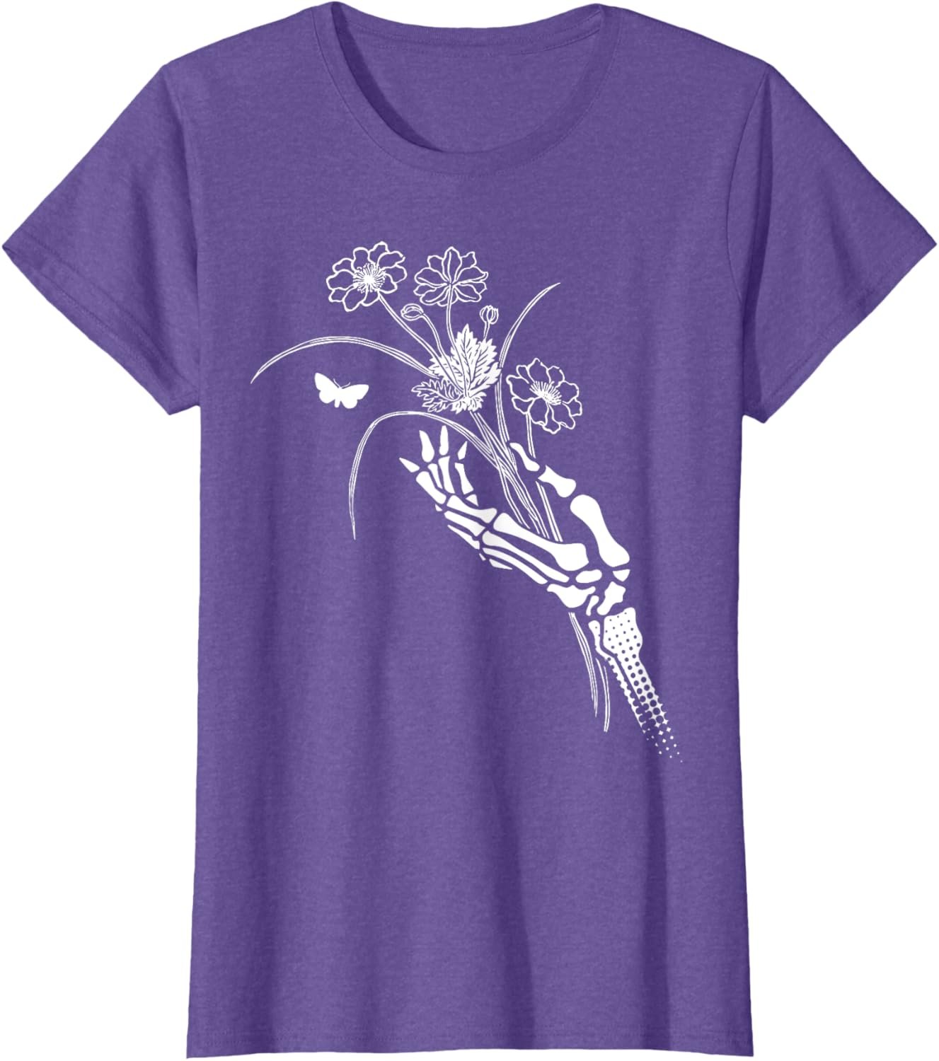 Skeleton Hand Holding Flowers Folkloric Wiccan Nature Witch T-Shirt