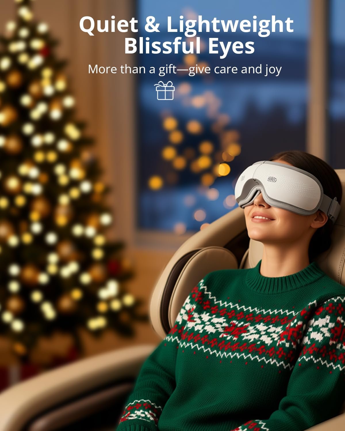I gave this eye massager to my wife and she was delighted with this product. The combination of soft warmth, compression and relaxing music, is perfect for disconnecting after a day in front of the screen or just to pamper yourself for a while.
