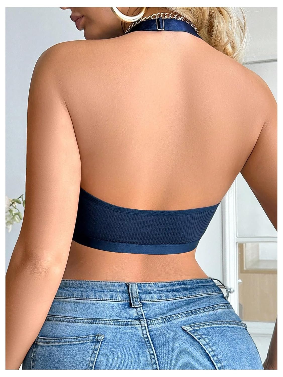 - Feature: halter bras for women, contrast lace, backless, front clasp, deep v neck, no underwire, unpadded, triangle cups, comfy bras