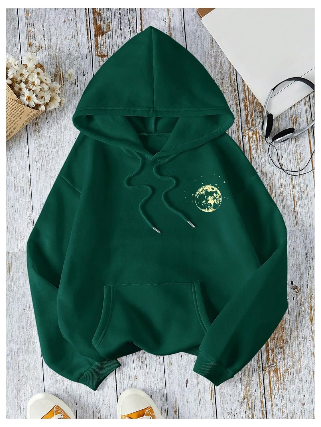 - Features: Moon print, drawstring, pocket, hooded, long sleeve, drop shoulder, womens hoodies, fashionable
