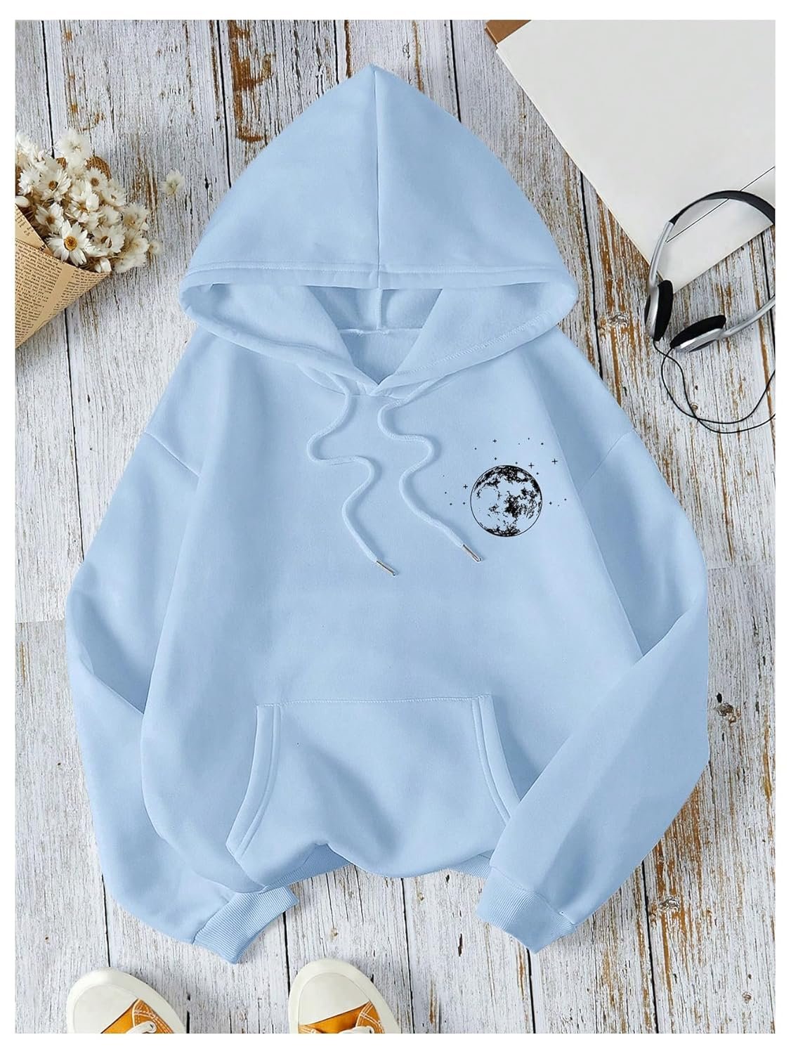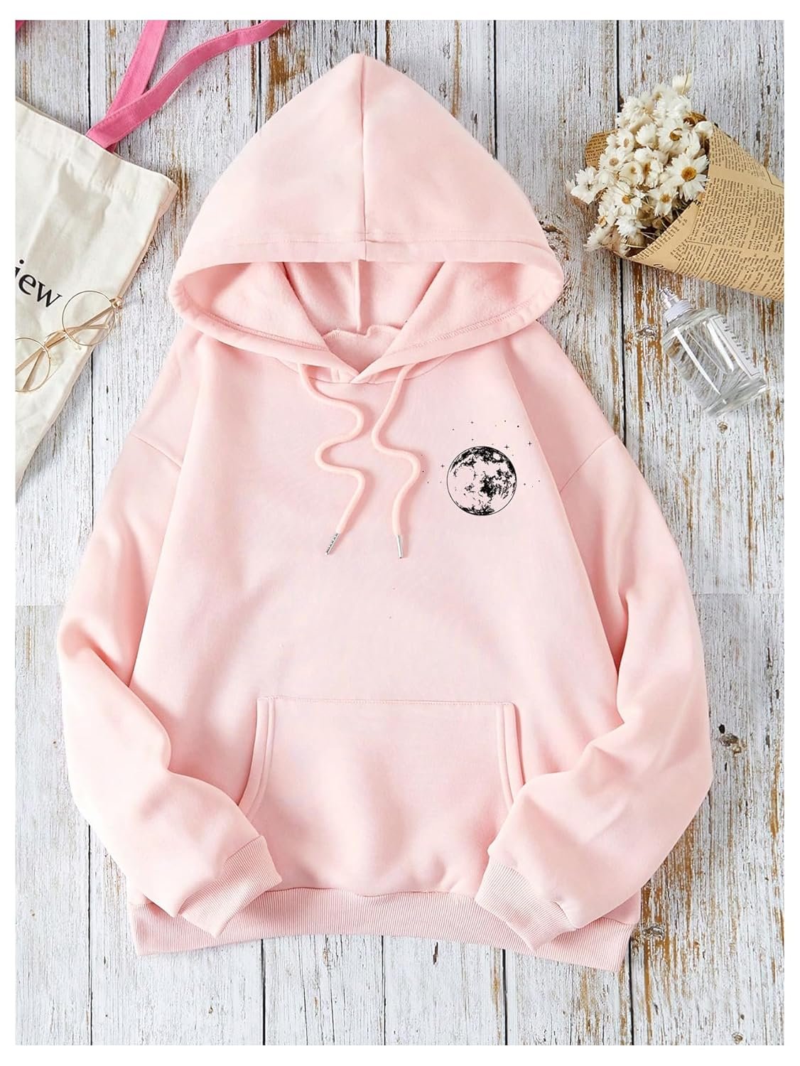 - Features: Moon print, drawstring, pocket, hooded, long sleeve, drop shoulder, womens hoodies, fashionable