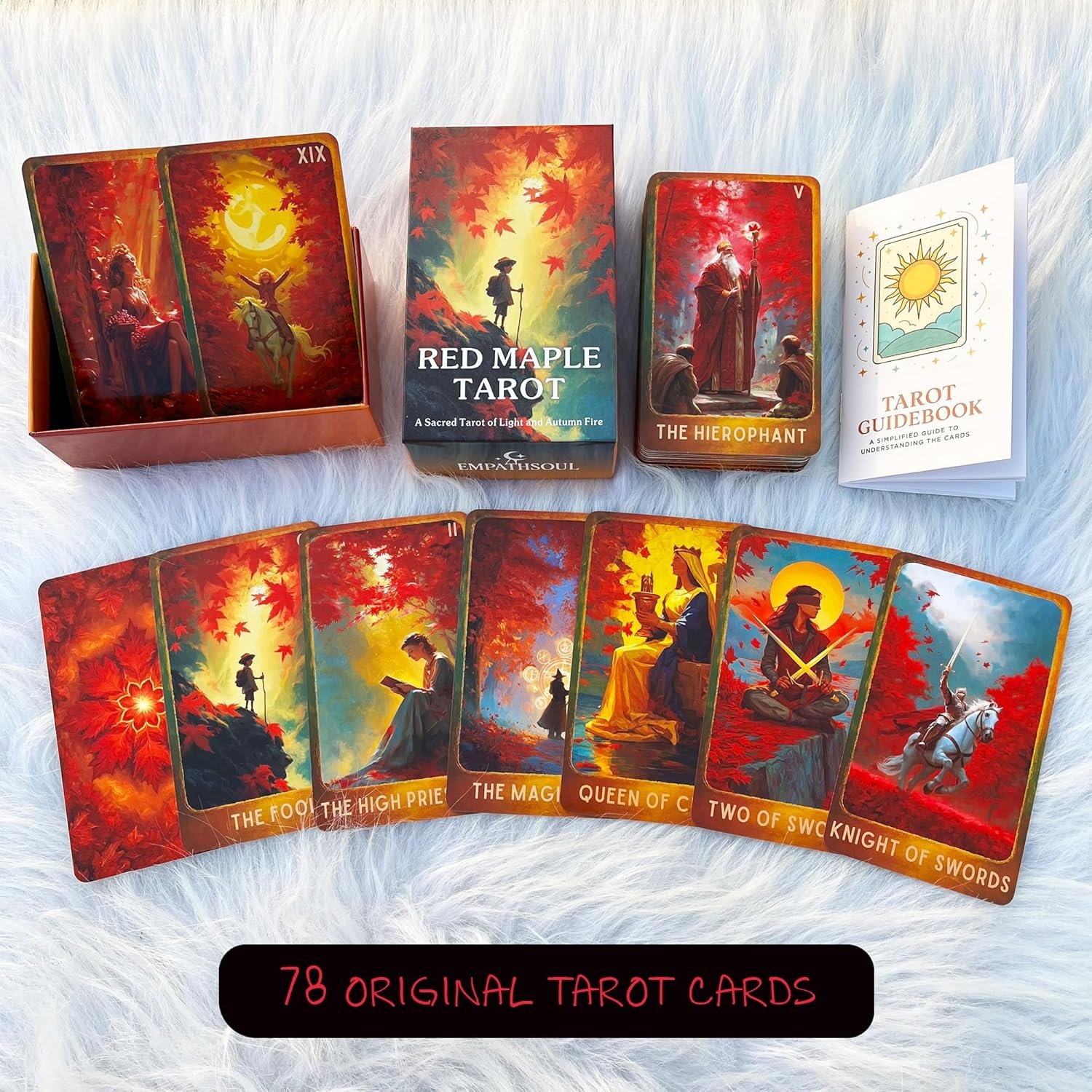 soulme Tarot Deck 78 Cards with Guidebook, Red Maple Tarot Illustrated Tarot Cards with Classic Tarot Symbolism, Tarot Deck for Beginners and Advanced Readers, Intuition,…