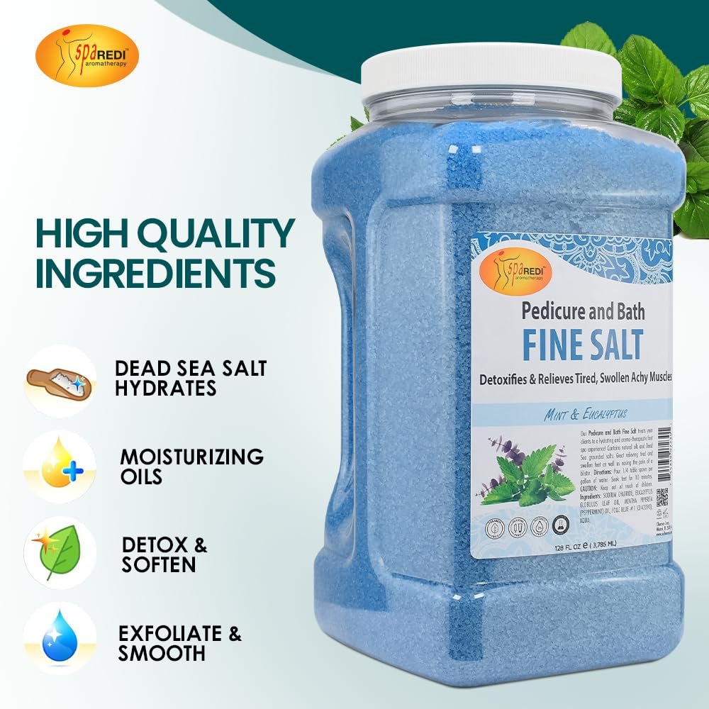 SPA REDI – Detox Foot Soak Pedicure and Bath Fine Salt, Mint and Eucalyptus, 128 Oz – Made with Dead Sea Salts, Argan Oil, Coconut Oil, and Essential Oil – Hydrates, Softens and…